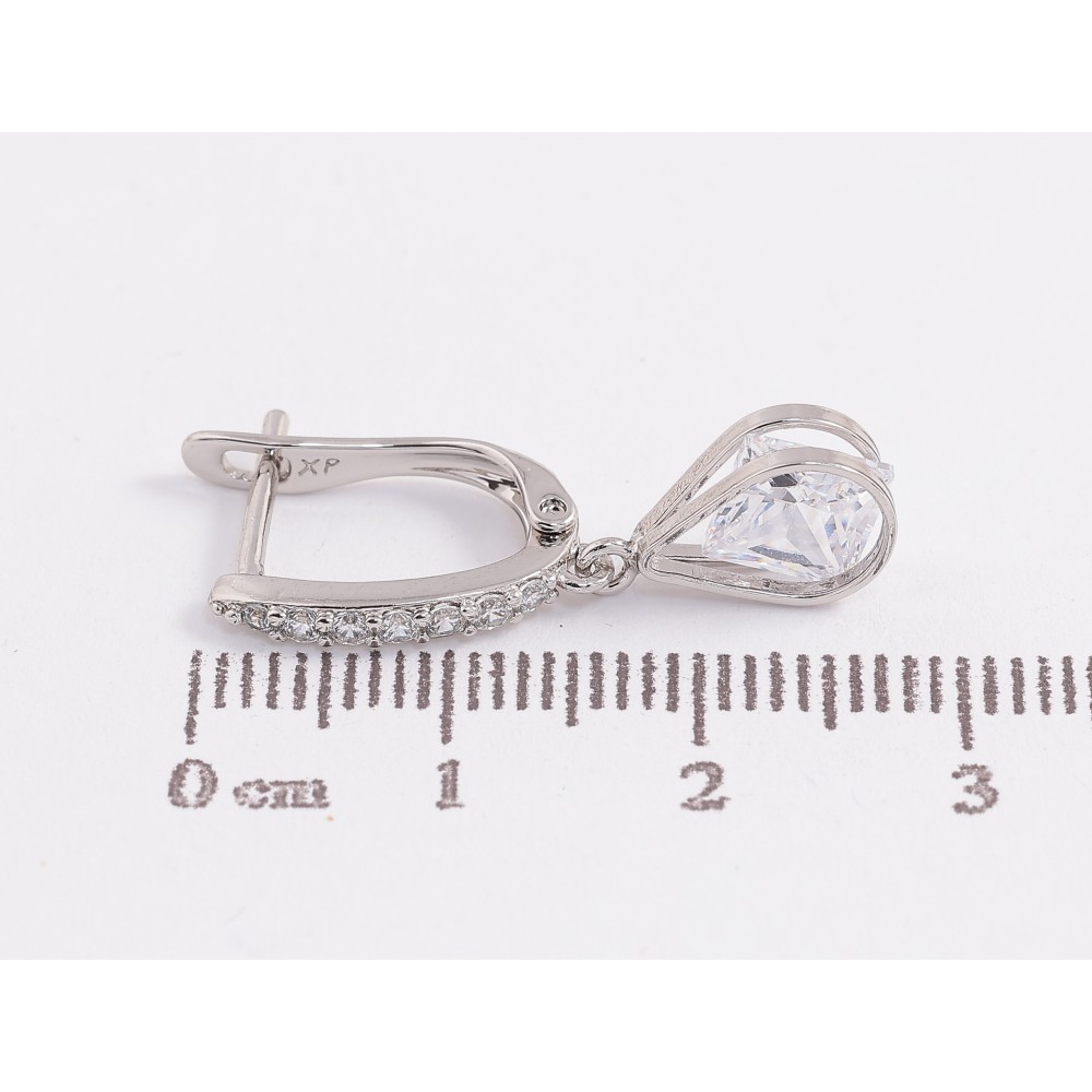 Серьги Xuping цвет Родий английский замок "Кристальные капельки"