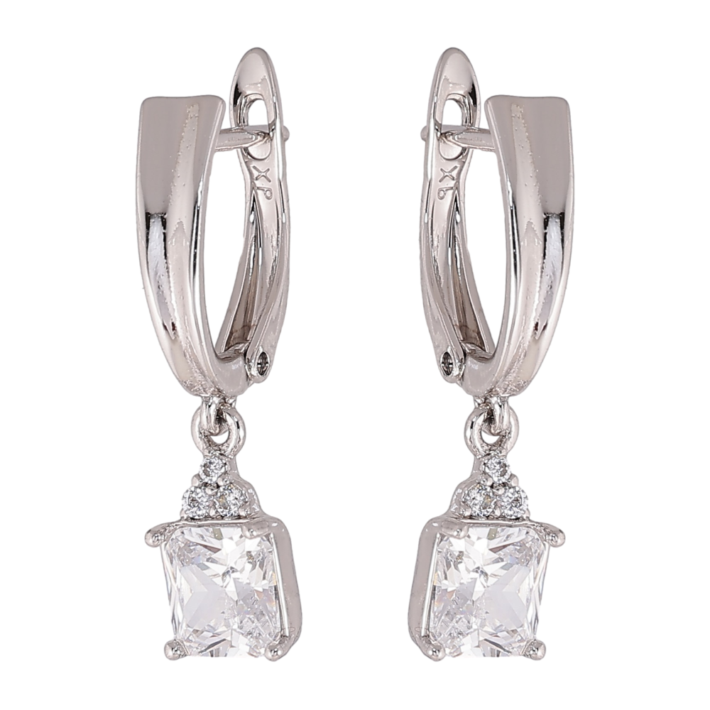 Серьги Xuping цвет Родий английский замок "Кристальные подвески"