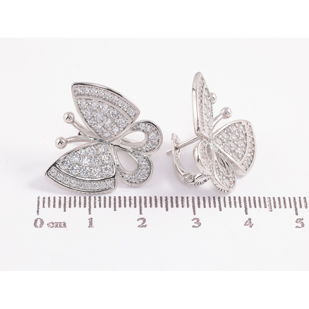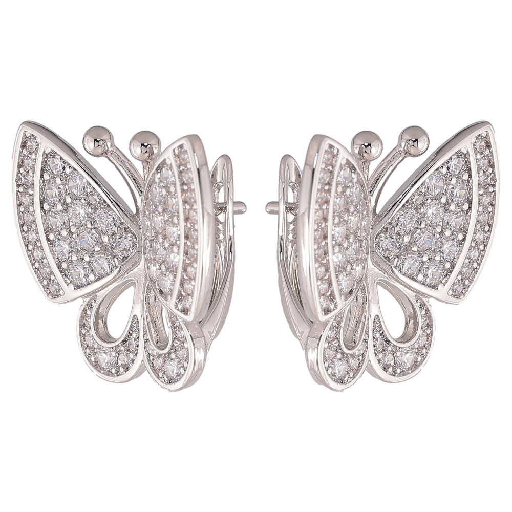 Серьги Xuping цвет Родий английский замок "Бабочки с инкрустацией кристаллами"