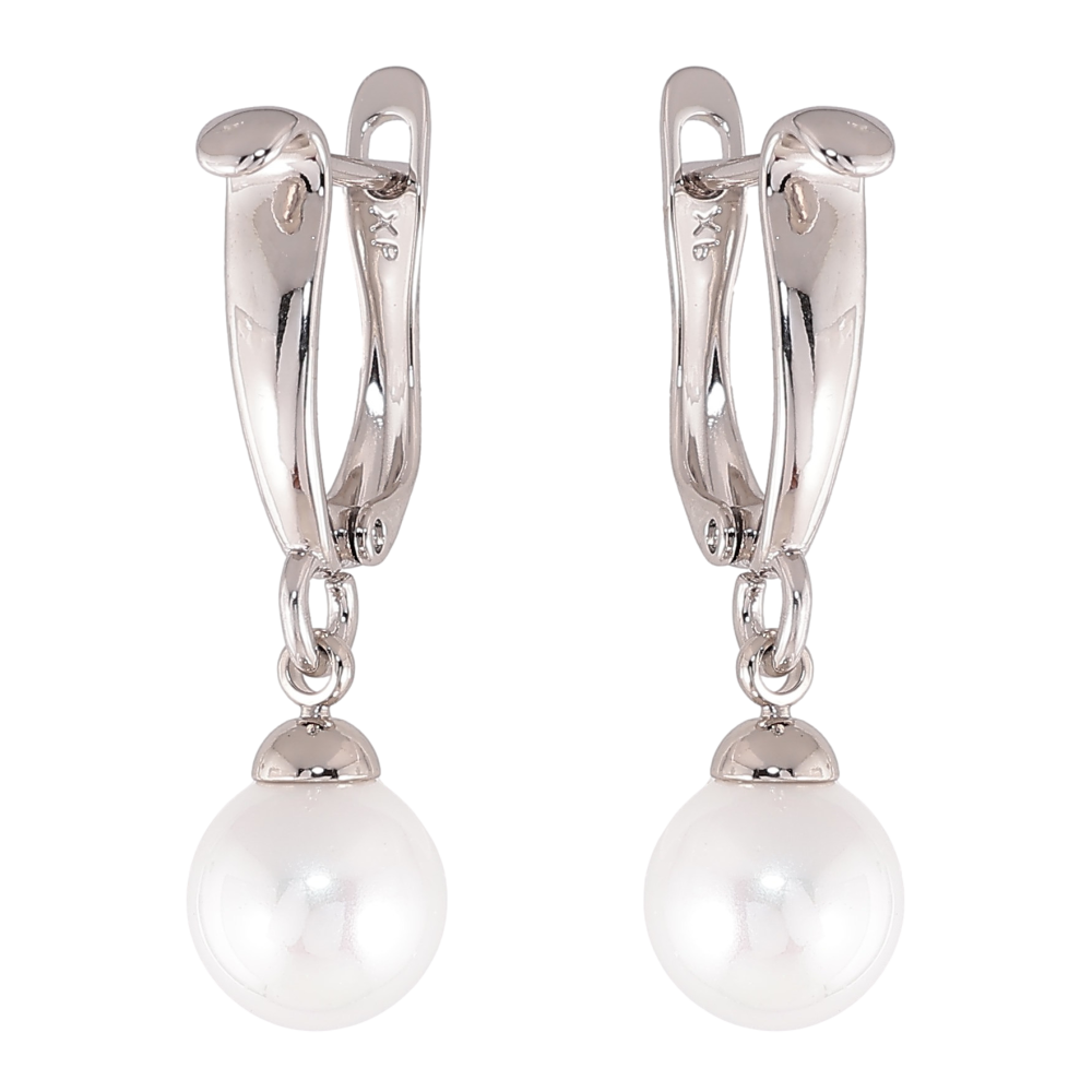 Серьги Xuping цвет Родий английский замок "Жемчужные подвески"