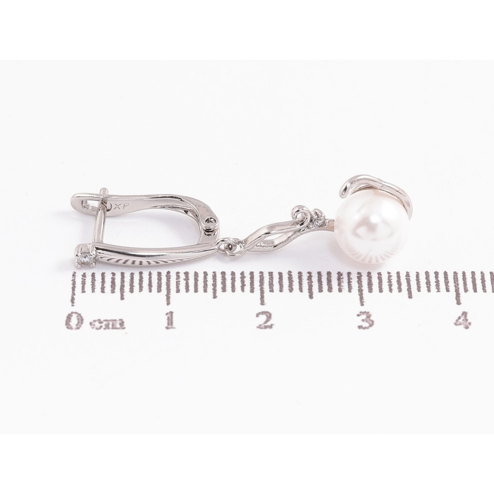 Серьги Xuping цвет Родий английский замок "Жемчужные подвески"