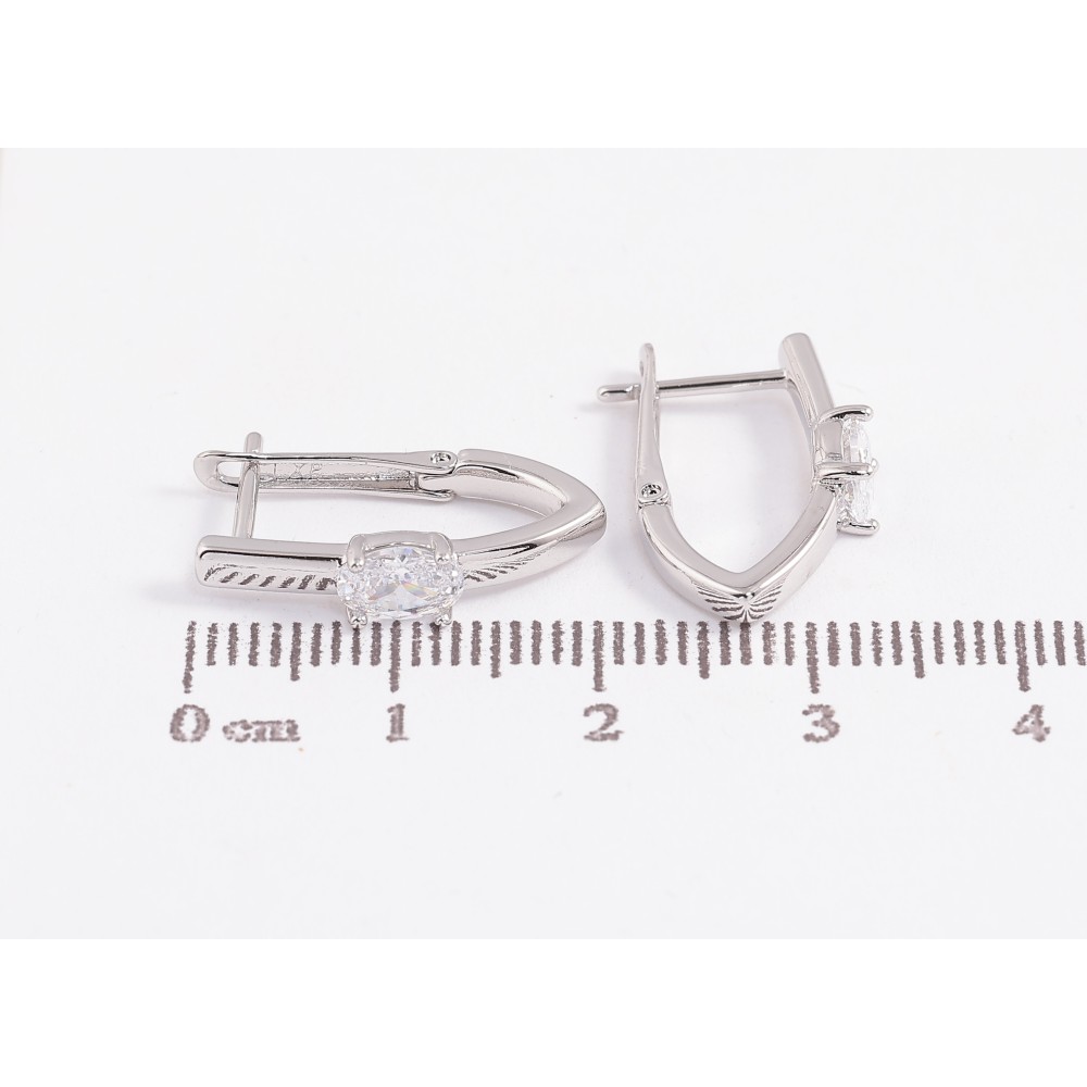 Серьги Xuping цвет Родий английский замок "Скобы с кристаллами" фото №1