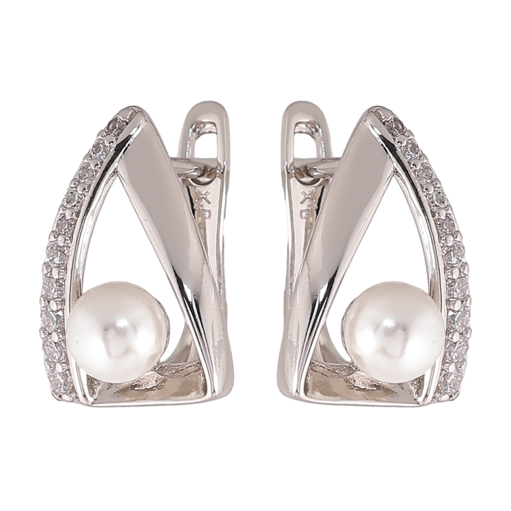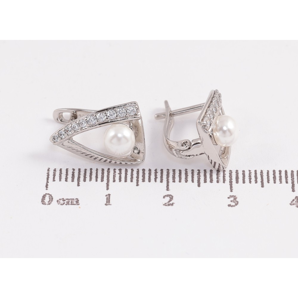 Серьги Xuping цвет Родий английский замок "Треугольники с кристаллами и жемчужинами"