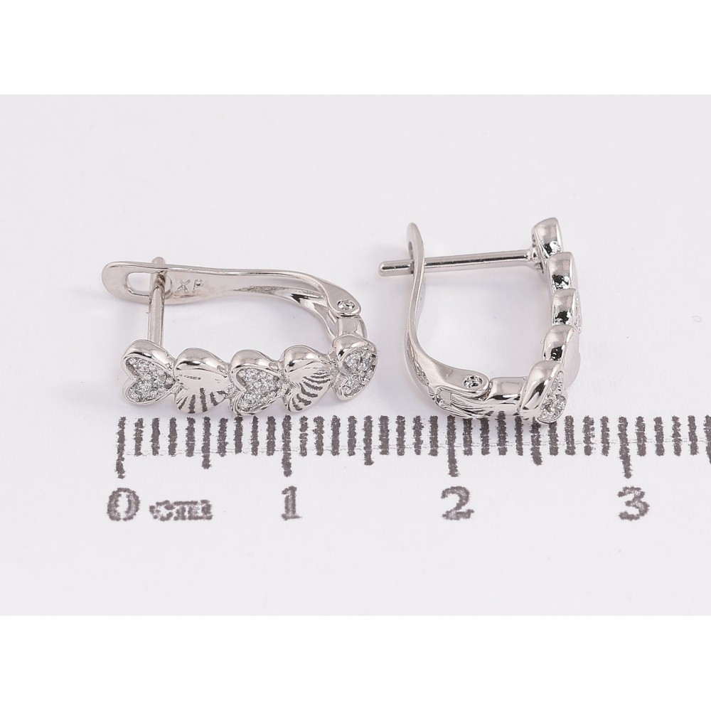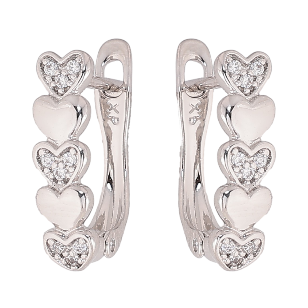 Серьги Xuping цвет Родий английский замок "Узор сердечки с кристаллами"