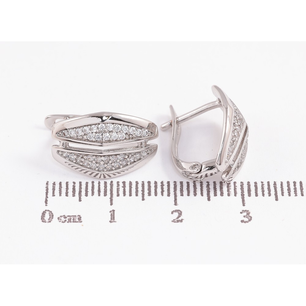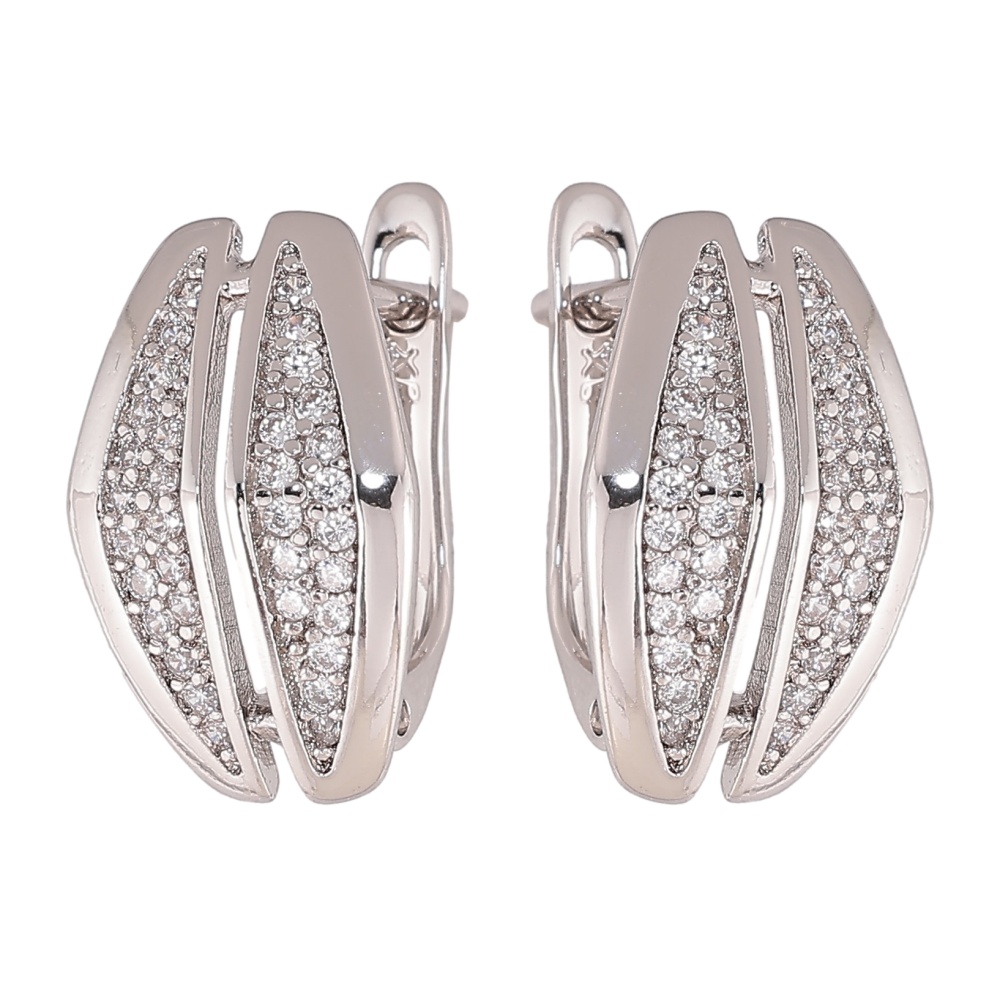 Серьги Xuping цвет Родий английский замок "Узор с кристаллами" фото №1