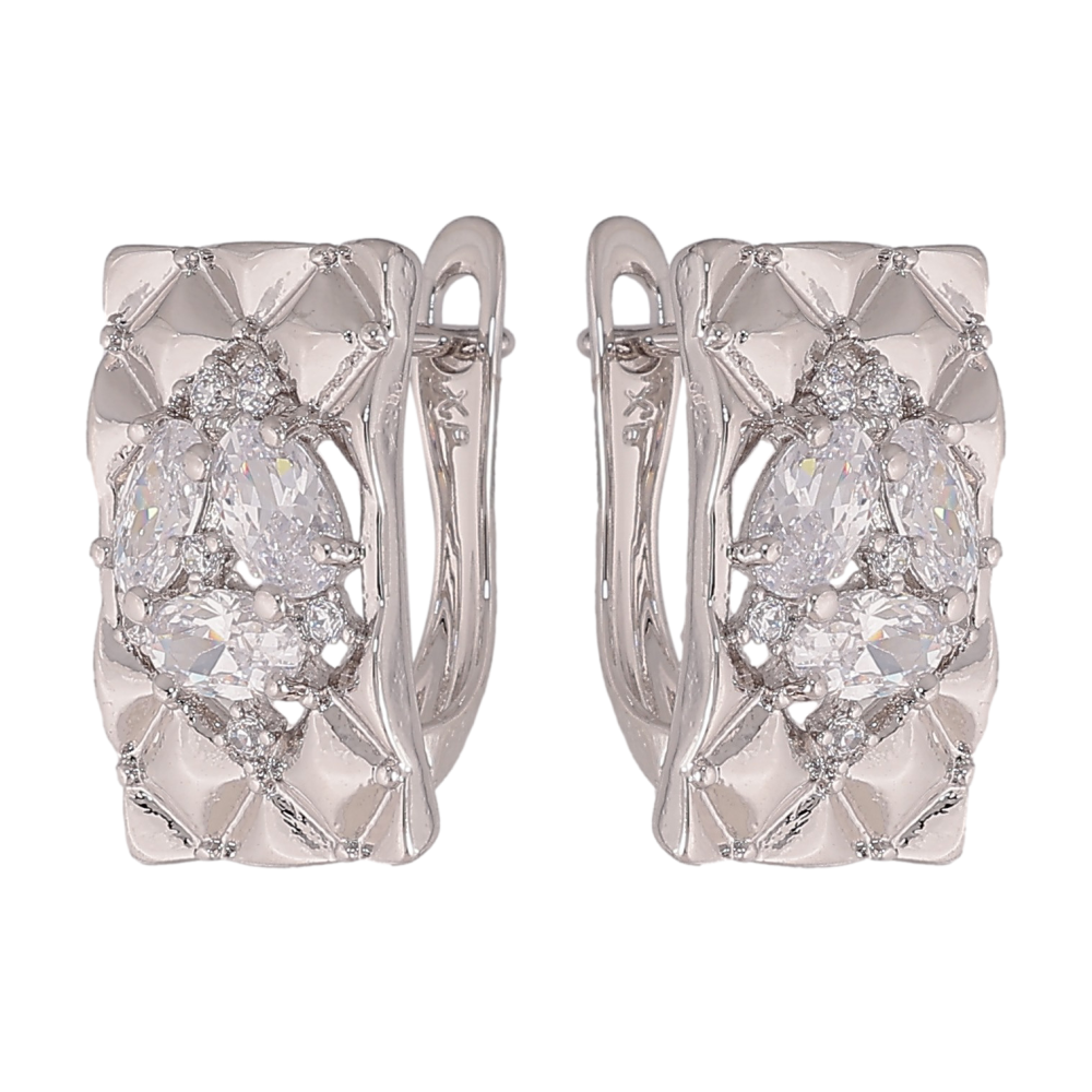 Серьги Xuping цвет Родий английский замок "Узор с кристаллами"