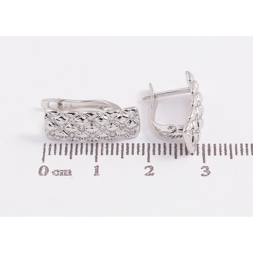 Серьги Xuping цвет Родий английский замок "Узор с кристаллами" фото №1