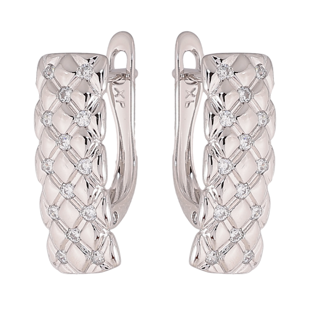 HIT Серьги Xuping цвет Родий английский замок "Узор с кристаллами" фото №1