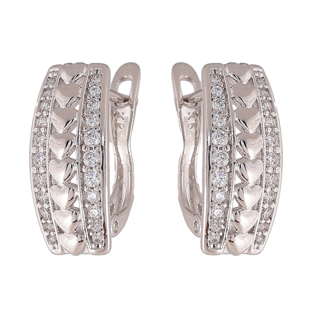 HIT Серьги Xuping цвет Родий английский замок "Узор с кристаллами" фото №1
