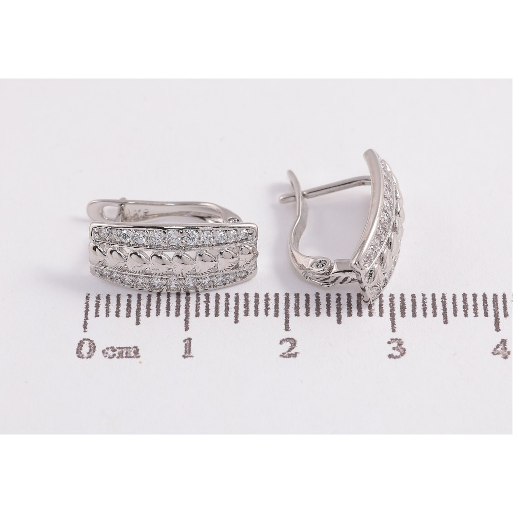 Серьги Xuping цвет Родий английский замок "Узор с кристаллами" фото №1