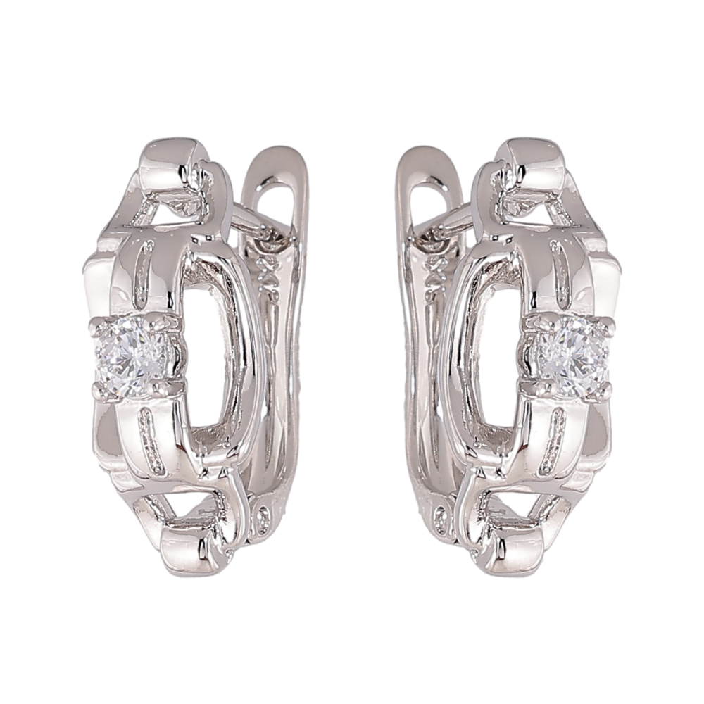 HIT Серьги Xuping цвет Родий английский замок "Узор с кристаллами" фото №1