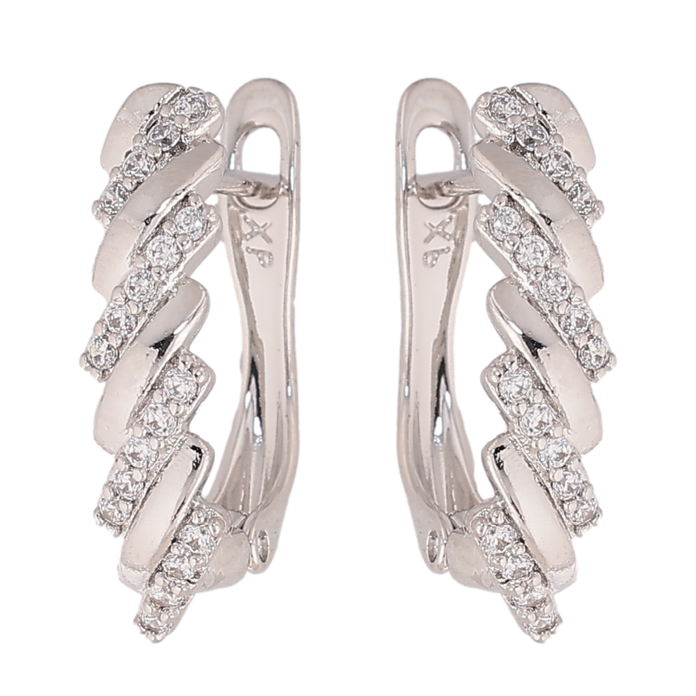 Серьги Xuping цвет Родий английский замок "Узор с кристаллами" фото №1