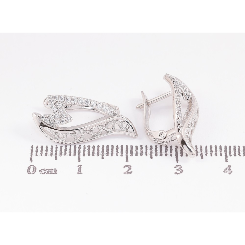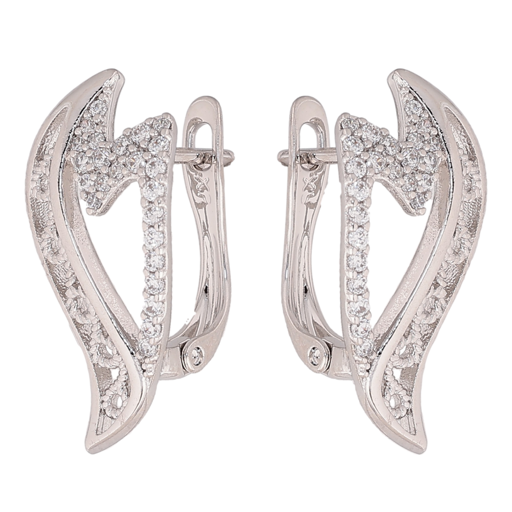 Серьги Xuping цвет Родий английский замок "Узор с кристаллами" фото №1