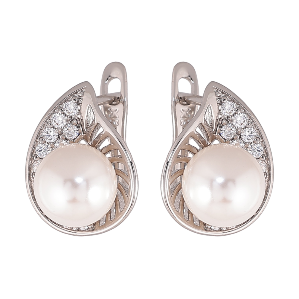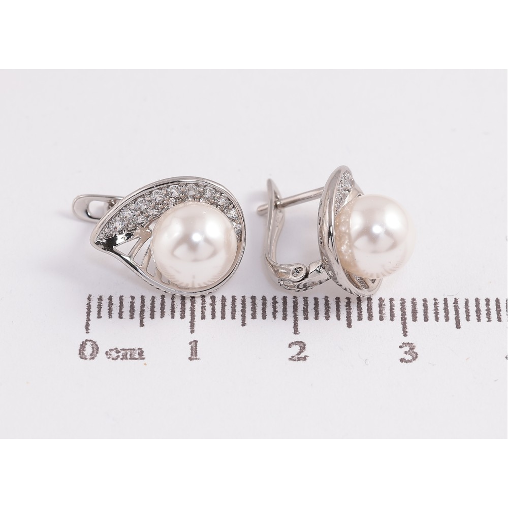 Серьги Xuping цвет Родий английский замок "Узор с кристаллами и жемчужинами"