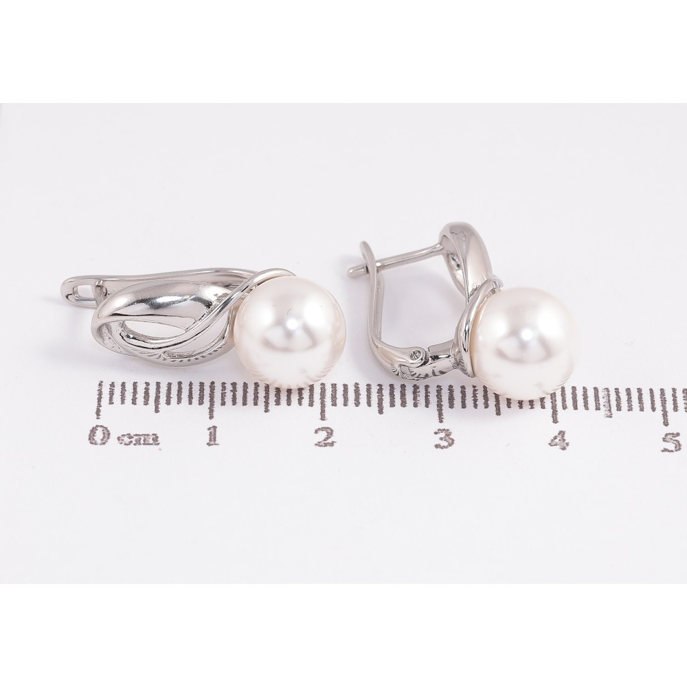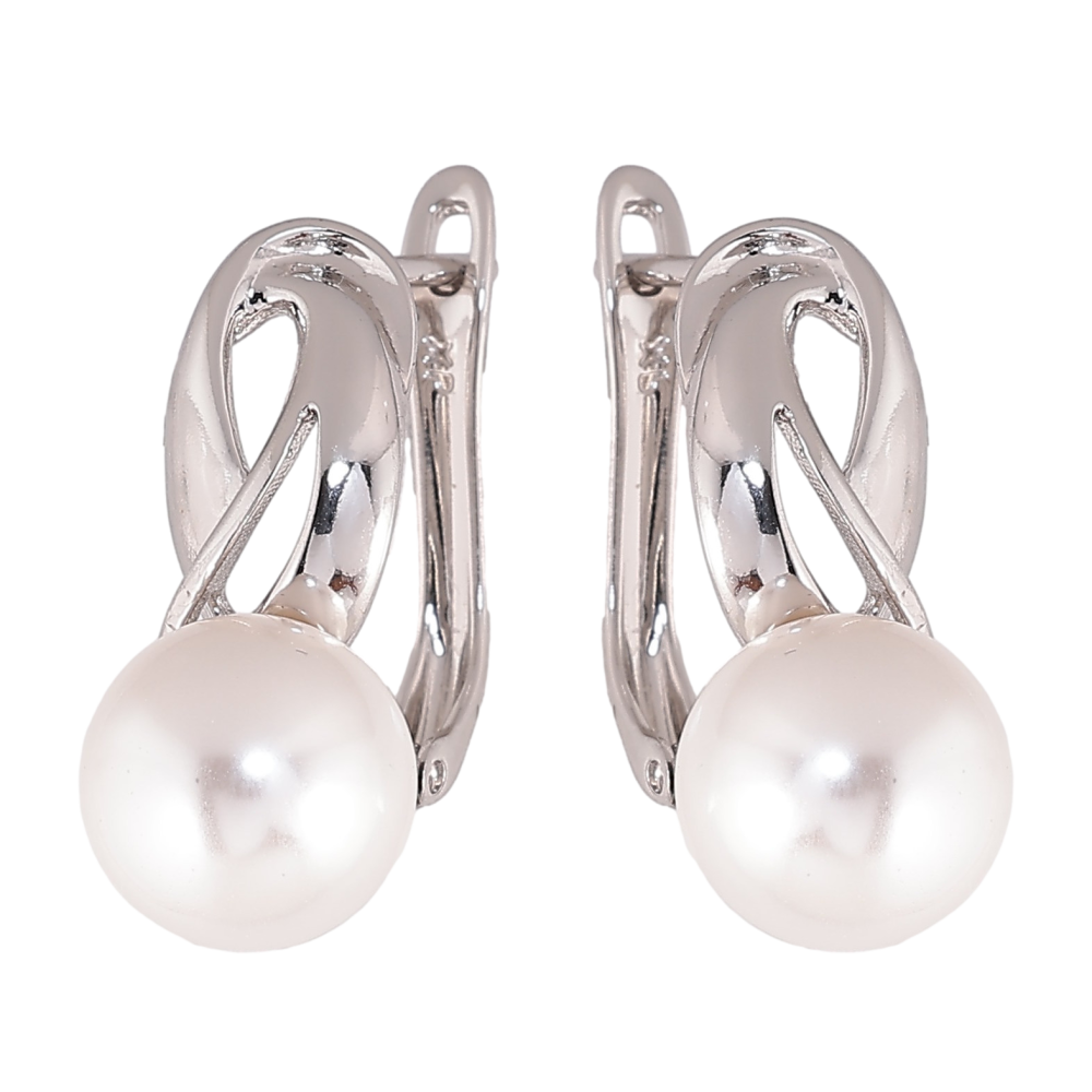 Серьги Xuping цвет Родий английский замок "Узор с жемчужинами"