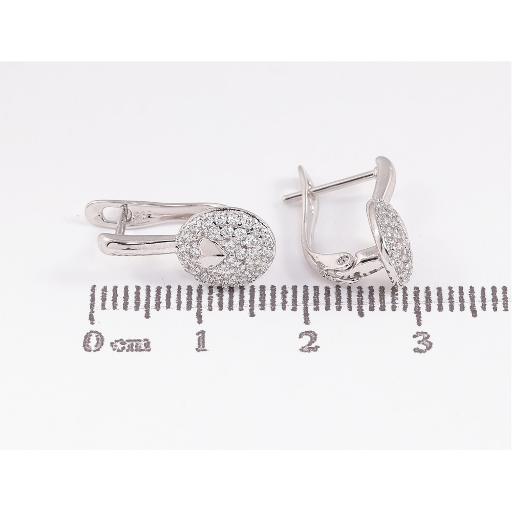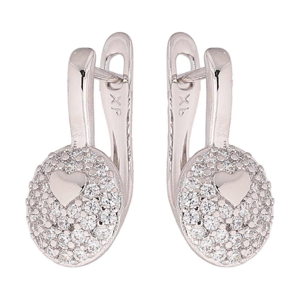 Серьги Xuping цвет Родий английский замок "Узор с сердечком и инкрустацией кристаллами"