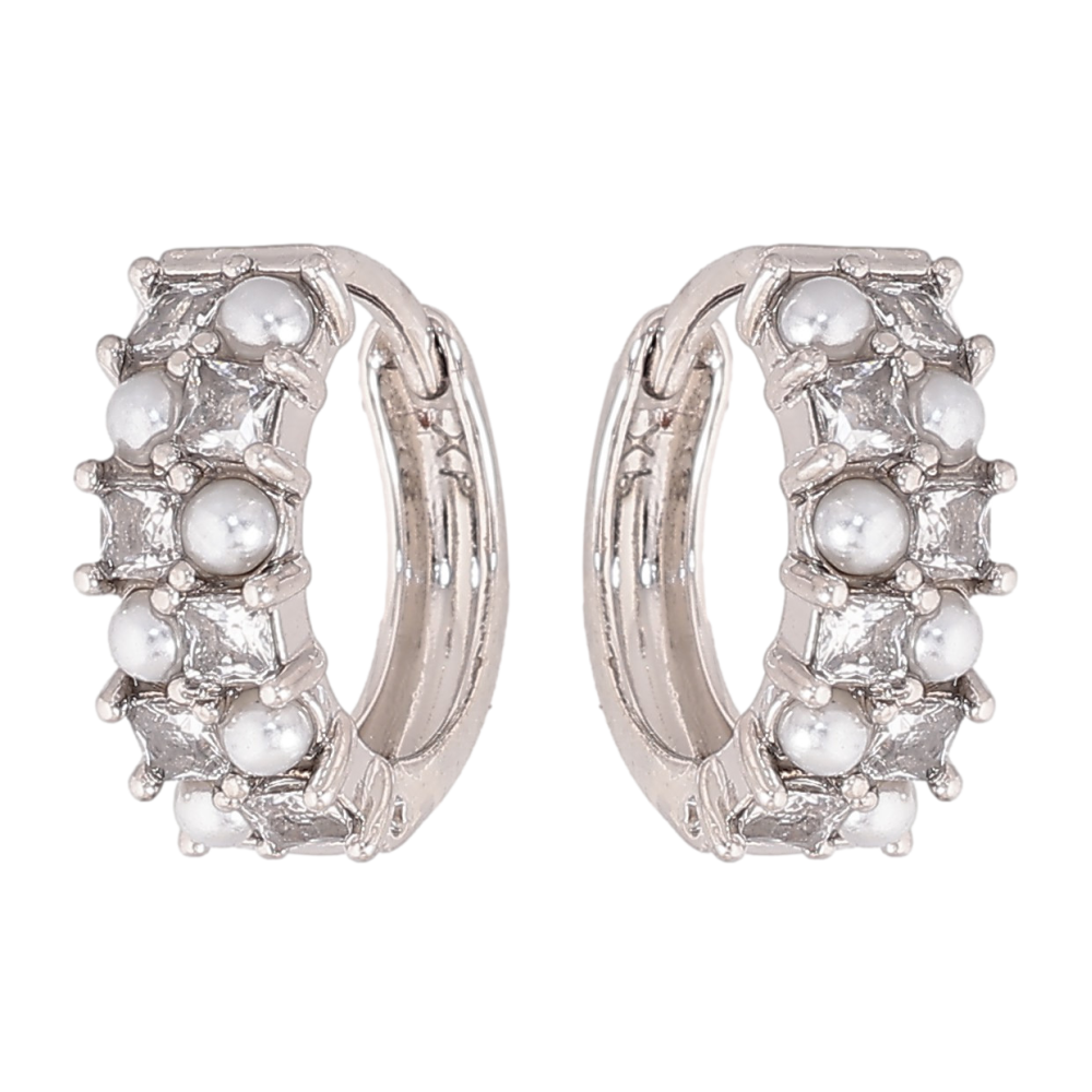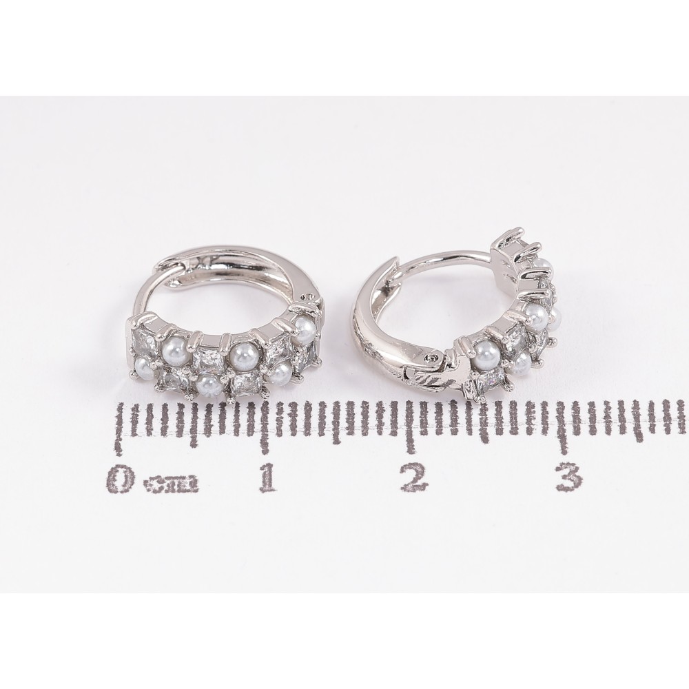 Серьги Xuping цвет Родий колечки "Узор с жемчужинами и кристаллами"
