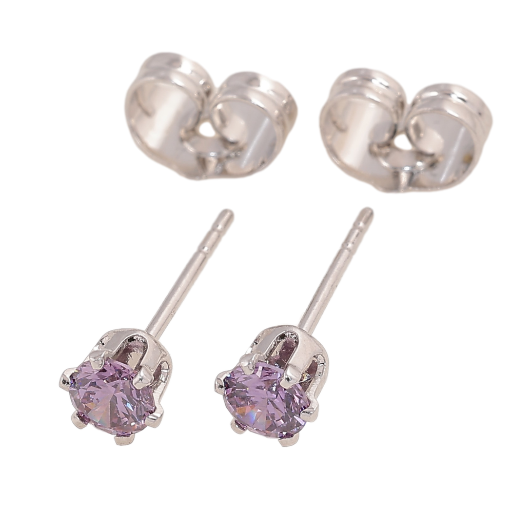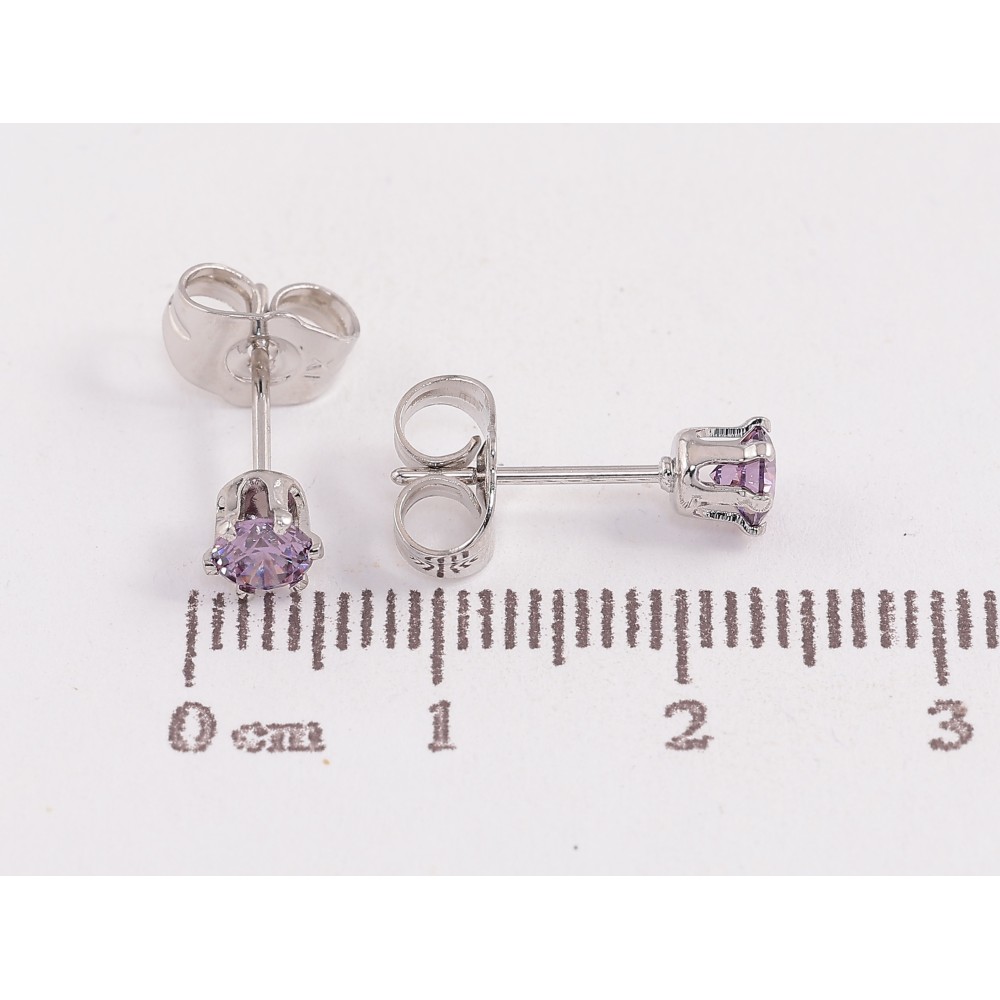 Серьги Xuping цвет Родий пусеты "Сиреневые кристаллы в 6-ти крапановой оправе" ø 4мм
