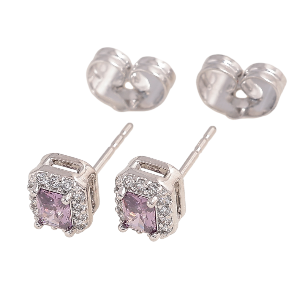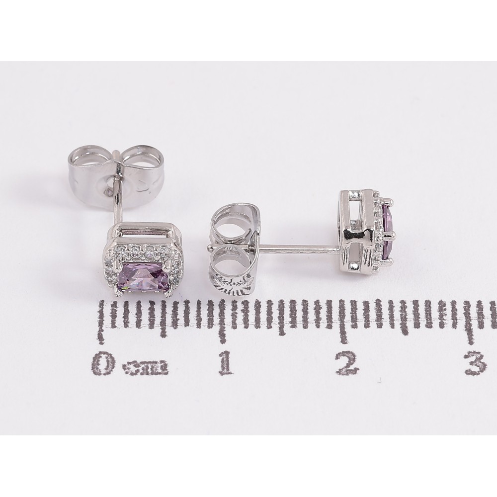 Серьги Xuping цвет Родий пусеты "Сиреневые кристаллы в обрамлении"