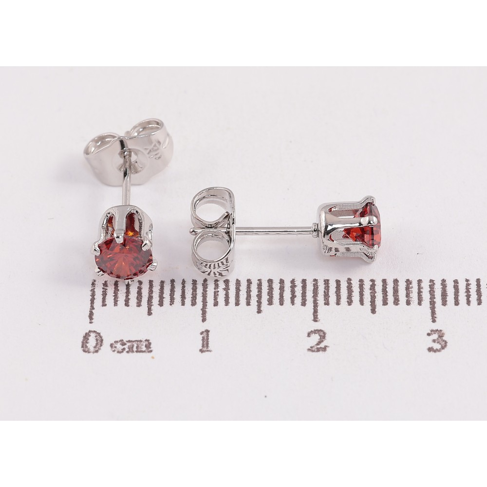 Серьги Xuping цвет Родий пусеты "Красные кристаллы в 6-ти крапановой оправе" ø 5мм