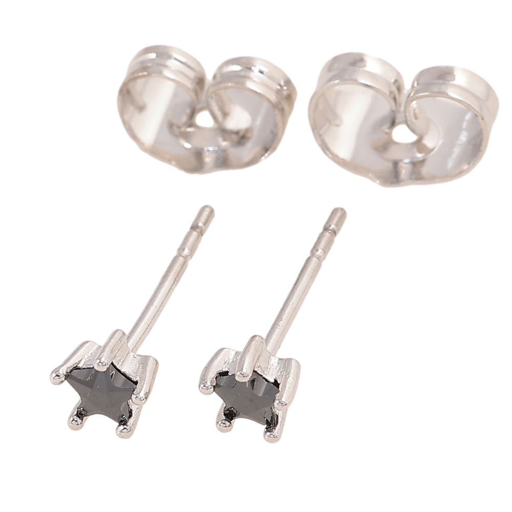 Серьги Xuping цвет Родий пусеты "Черные кристальные звездочки" ø 4мм