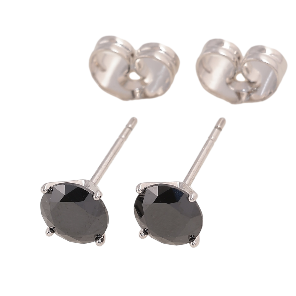 Серьги Xuping цвет Родий пусеты "Черные кристаллы в 4-х крапановой оправе" ø 6мм