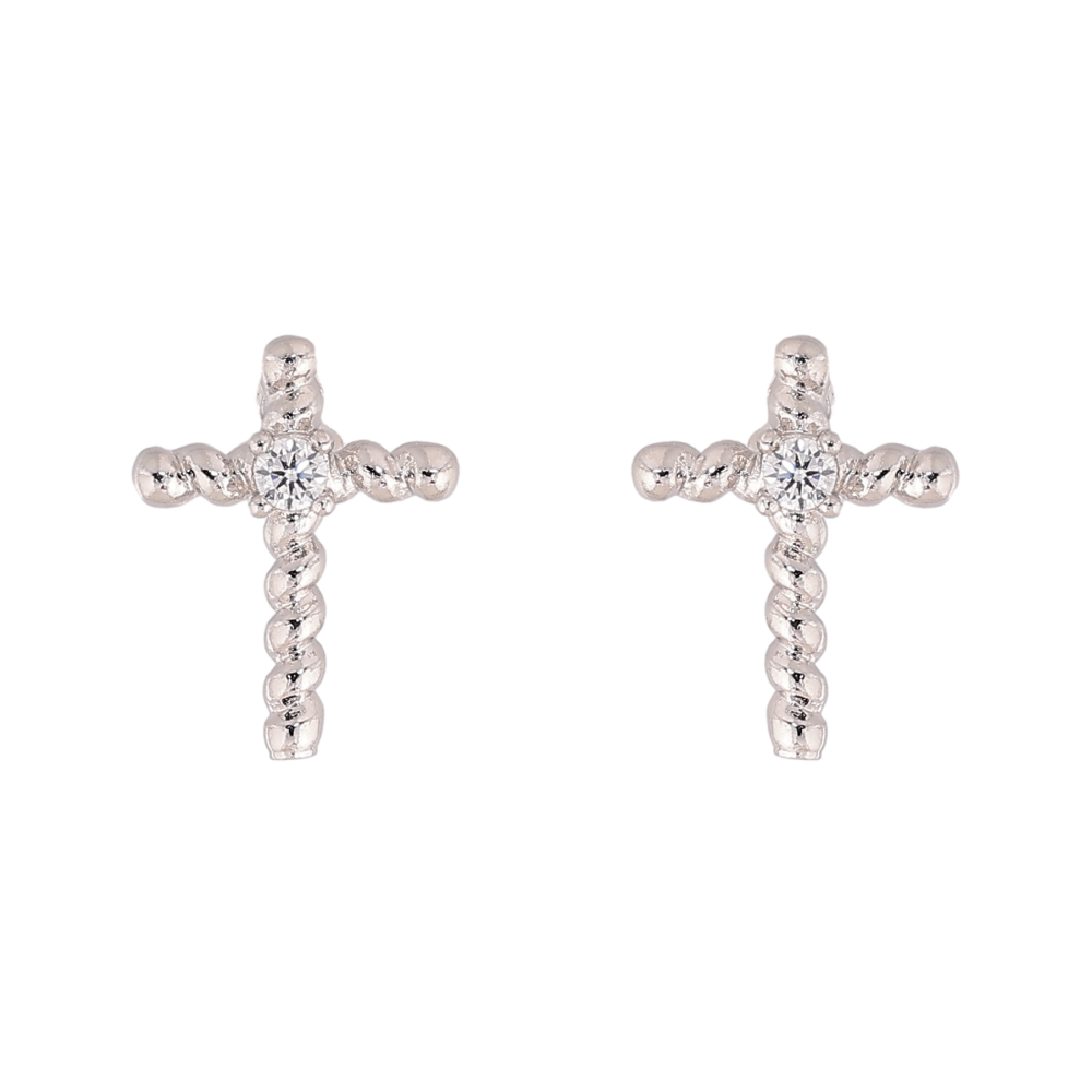 Серьги Xuping цвет Родий пусеты "Крестики с кристаллами"