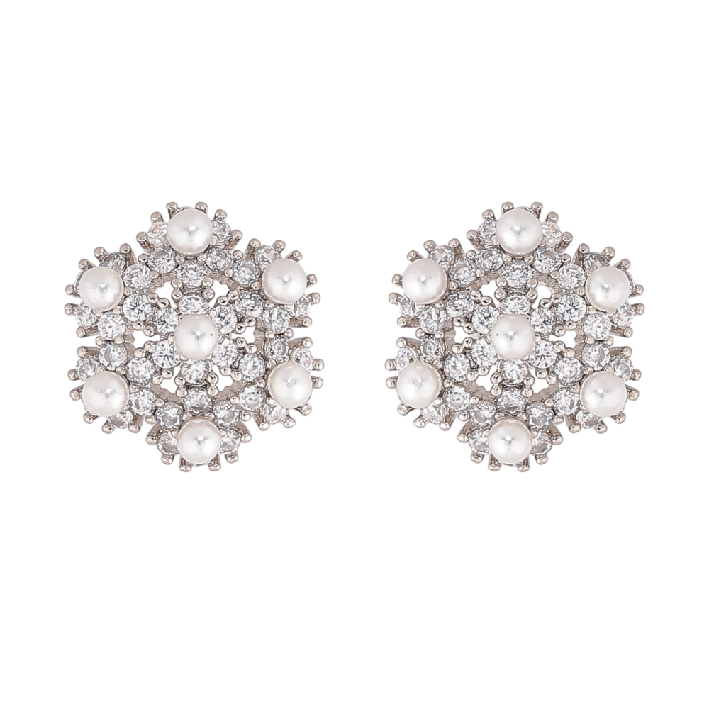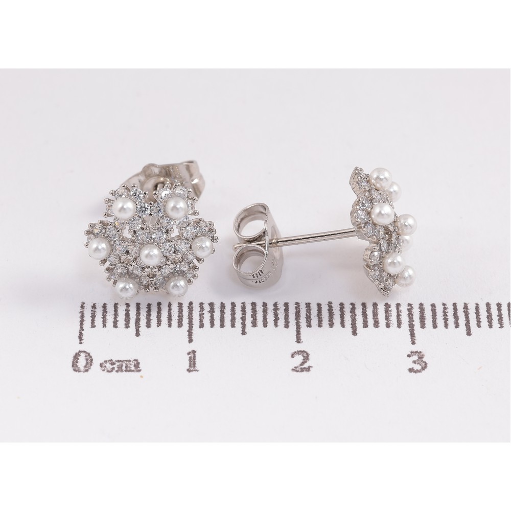 Серьги Xuping цвет Родий пусеты "Кристальные цветочки с жемчужинами"
