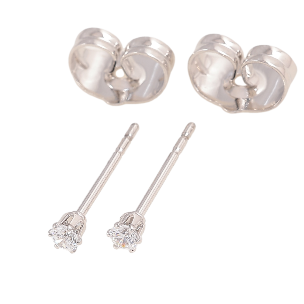 Серьги Xuping цвет Родий пусеты "Кристаллы в 6-ти крапановой оправе" ø 2мм