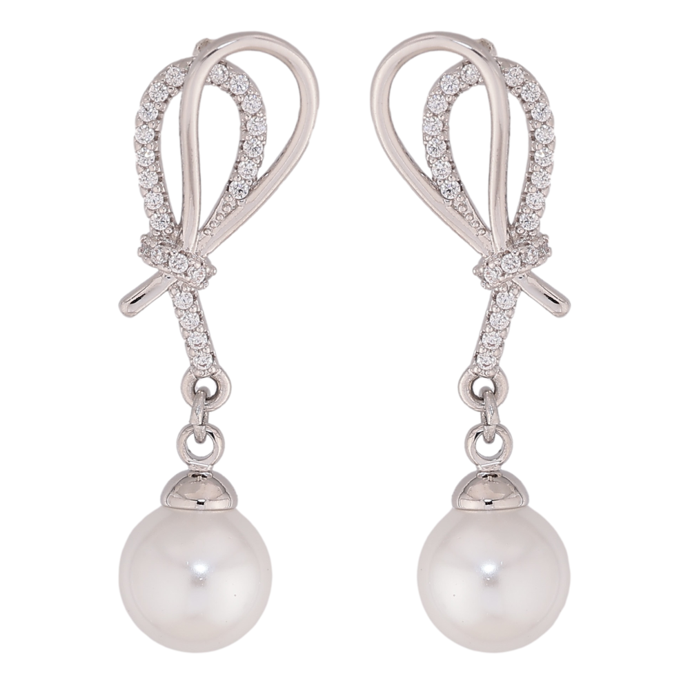 Серьги Xuping цвет Родий пусеты "Петельки с жемчужными подвесками"
