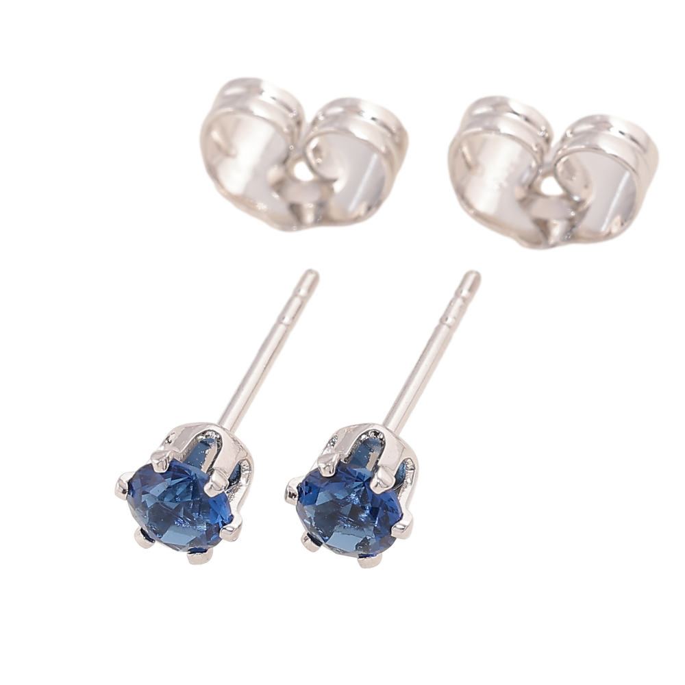 Серьги Xuping цвет Родий пусеты "Синие кристаллы в 6-ти крапановой оправе" ø 4мм