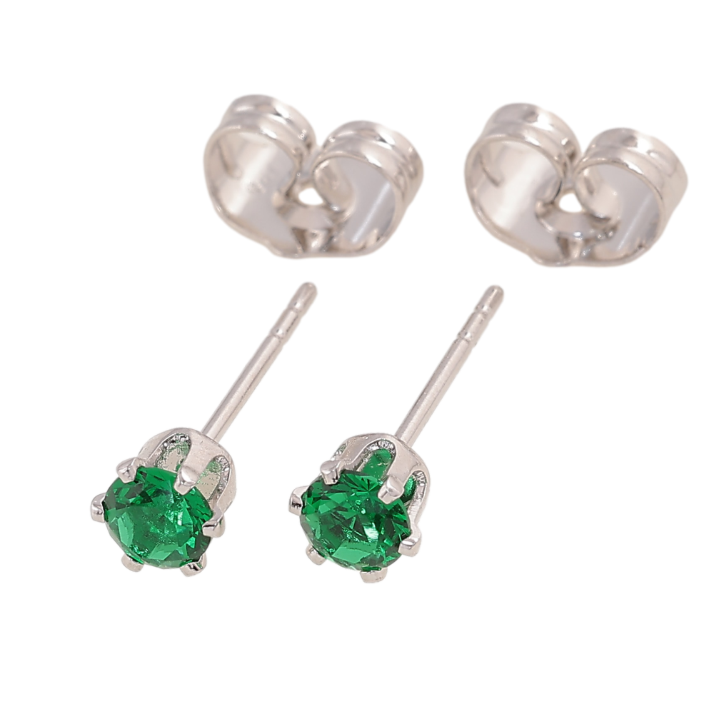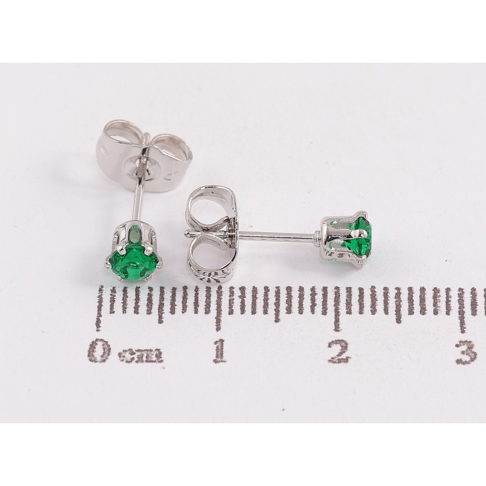Серьги Xuping цвет Родий пусеты "Зеленые кристаллы в 6-ти крапановой оправе" ø 4мм