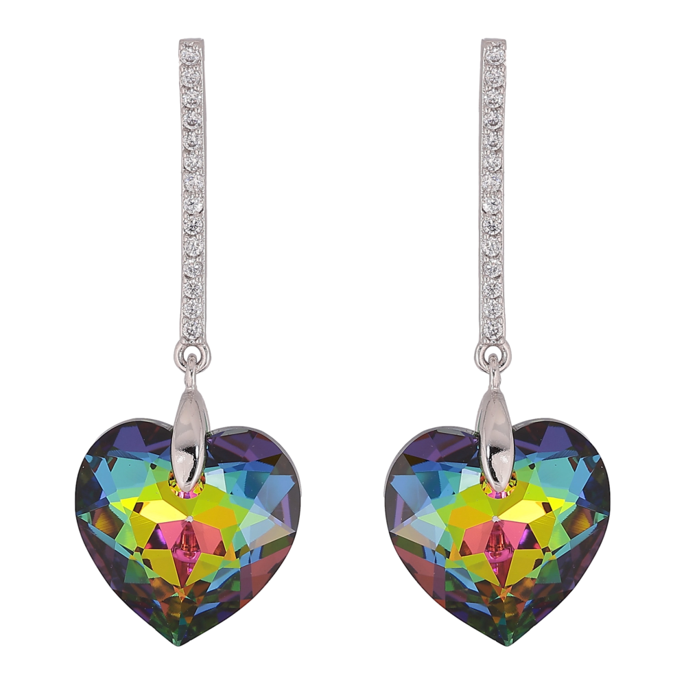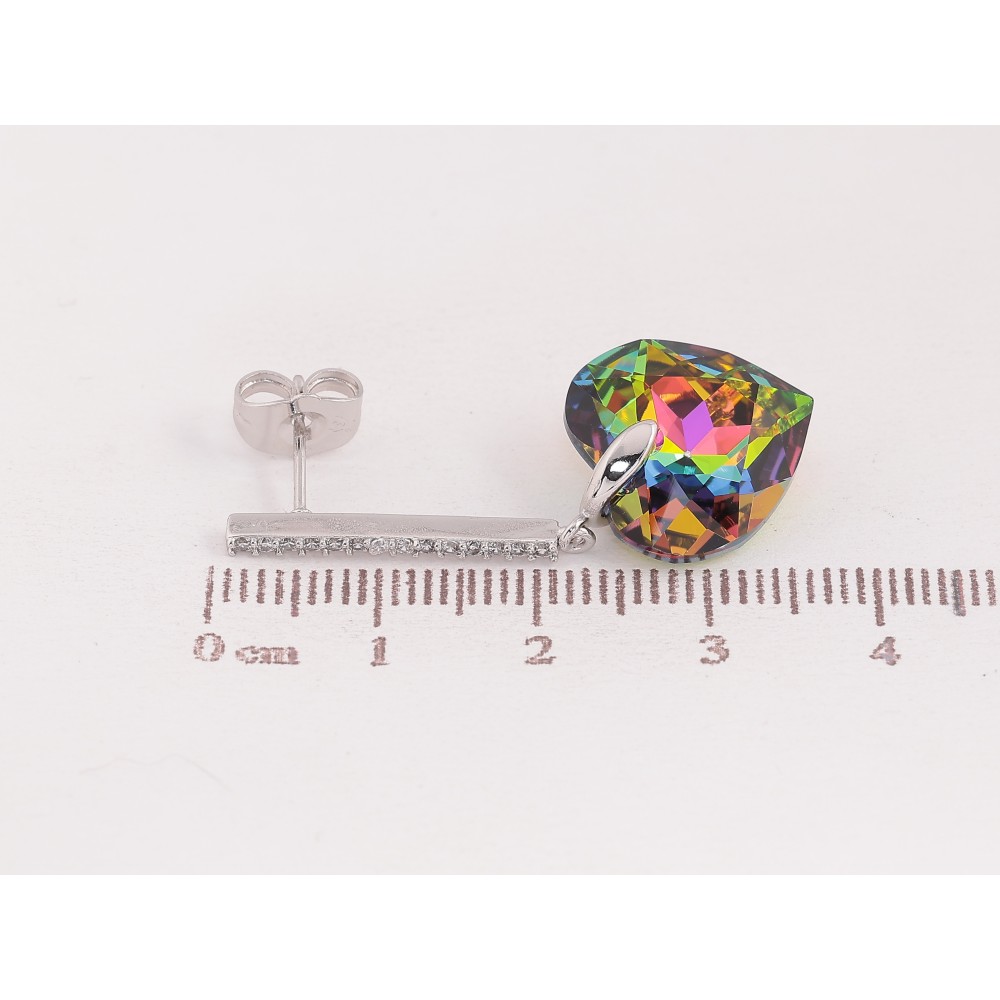Серьги Xuping цвет Родий с кристаллами Swarovski пусеты "Дорожки с кристальным сердцем Vitrail Medium"