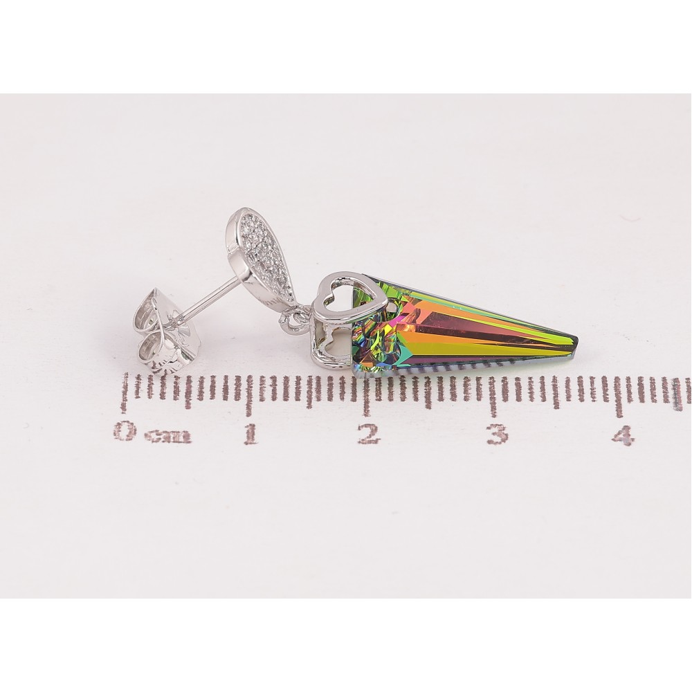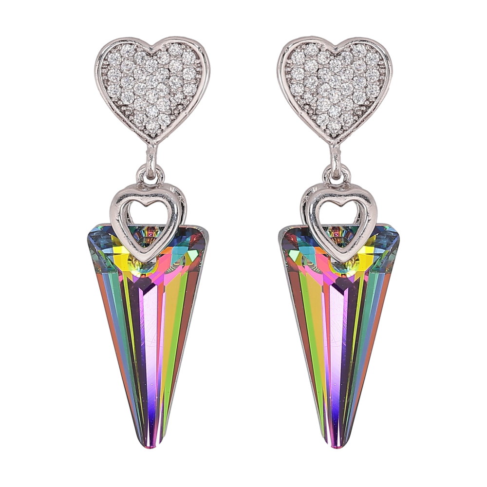 Серьги Xuping цвет Родий с кристаллами Swarovski пусеты "Сердечки с кристаллами Vitrail Medium"