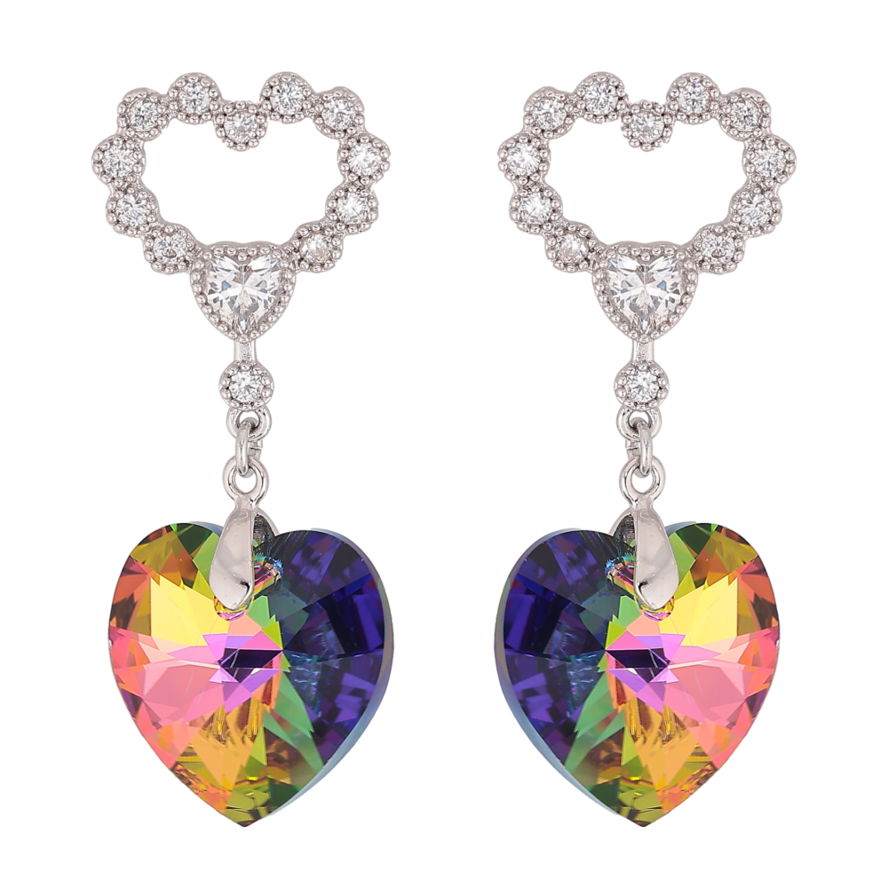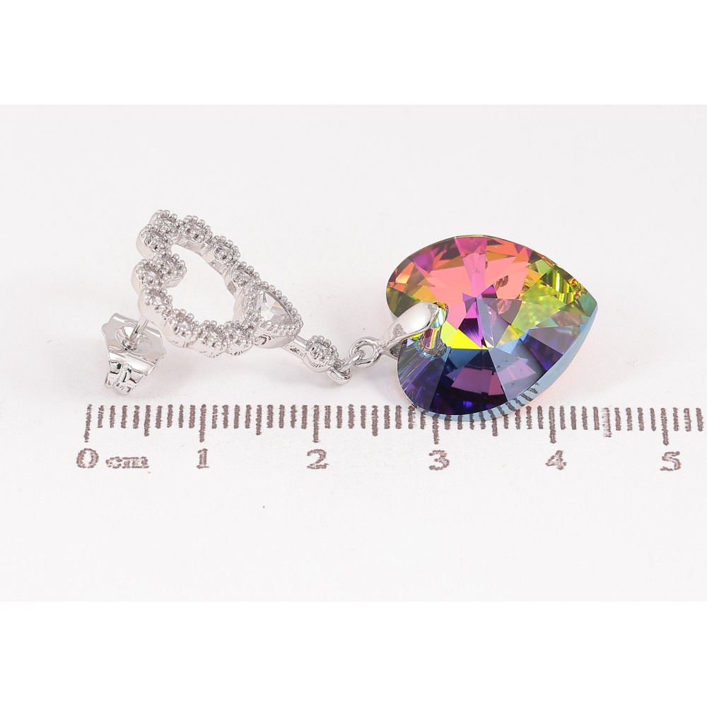 Серьги Xuping цвет Родий с кристаллами Swarovski пусеты "Сердечки с подвеской кристалл Vitrail Medium"