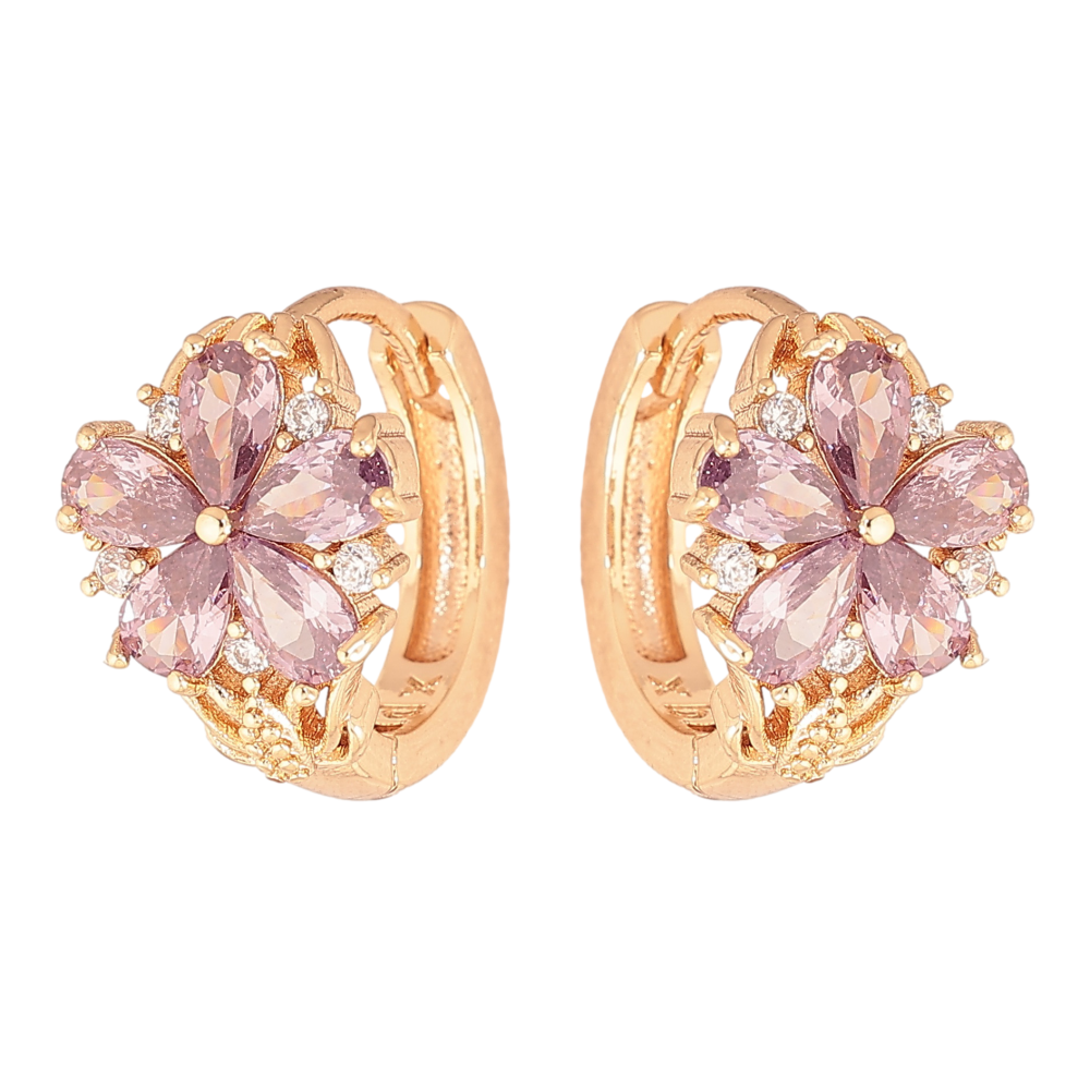 Серьги Xuping M&L цвет 18K колечки "Цветочки с сиреневыми кристаллами"