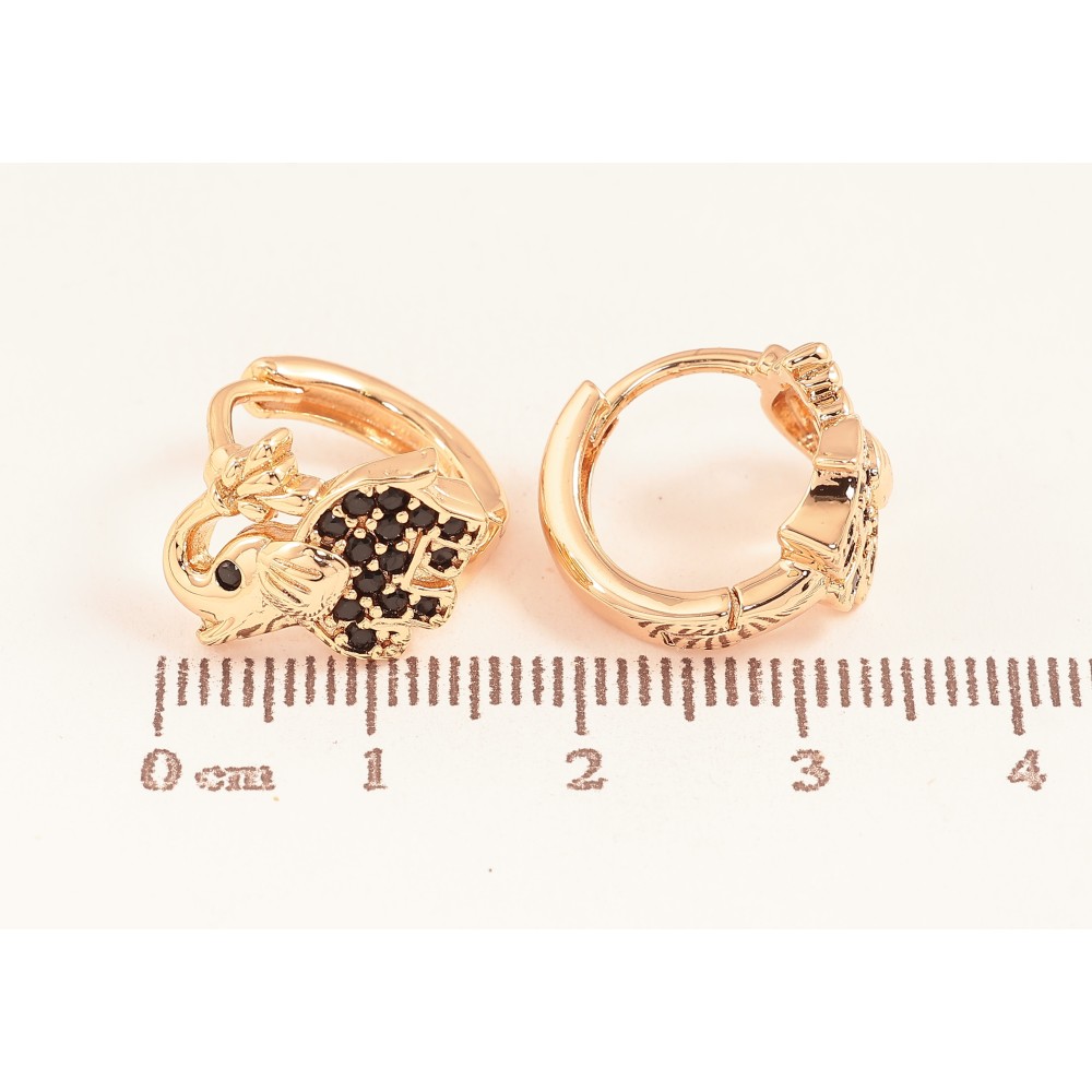 Серьги Xuping M&L цвет 18K колечки "Слоники с черными кристаллами"