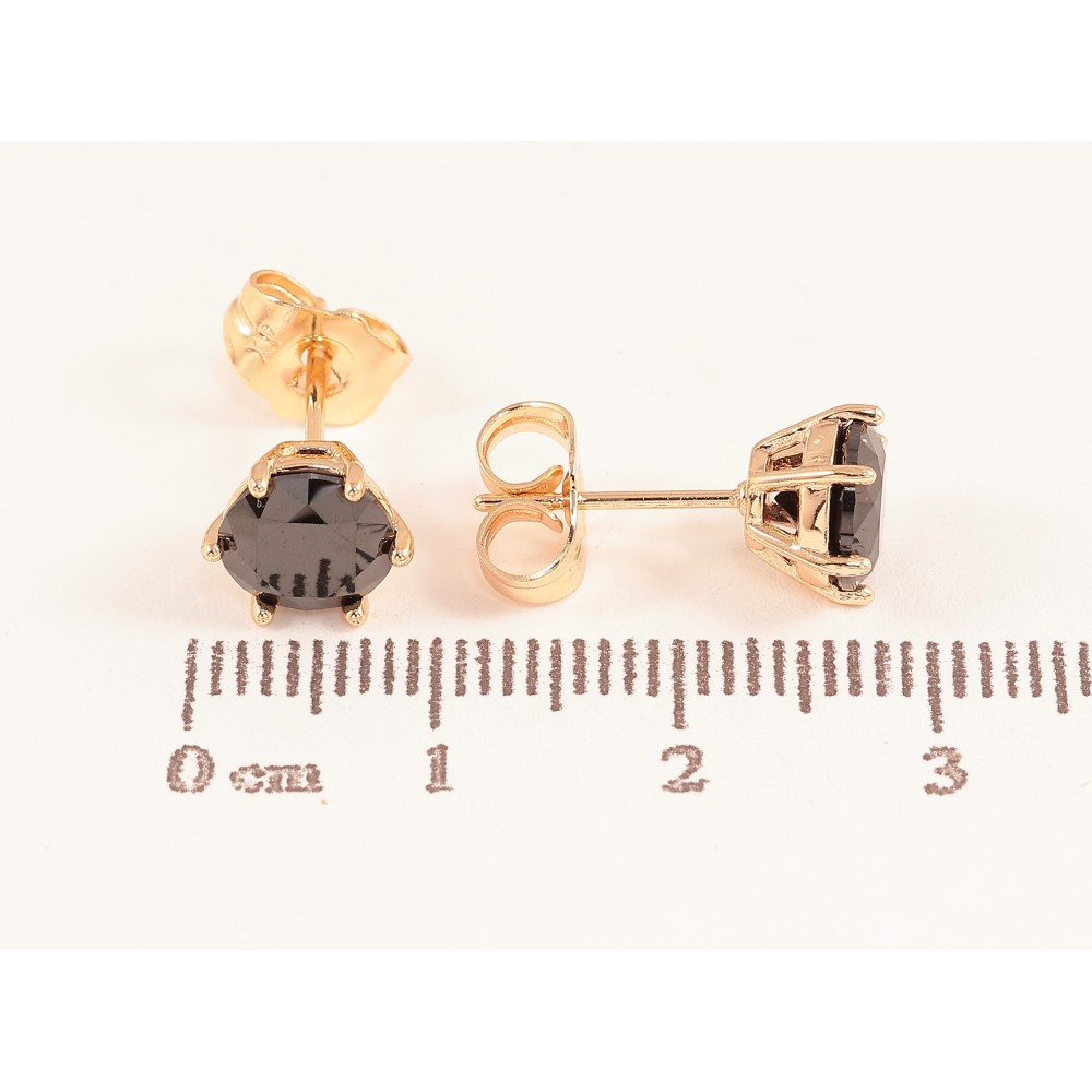 Серьги Xuping M&L цвет 18K пусеты "Черные кристаллы в 6-ти крапановой оправе" ø 7мм