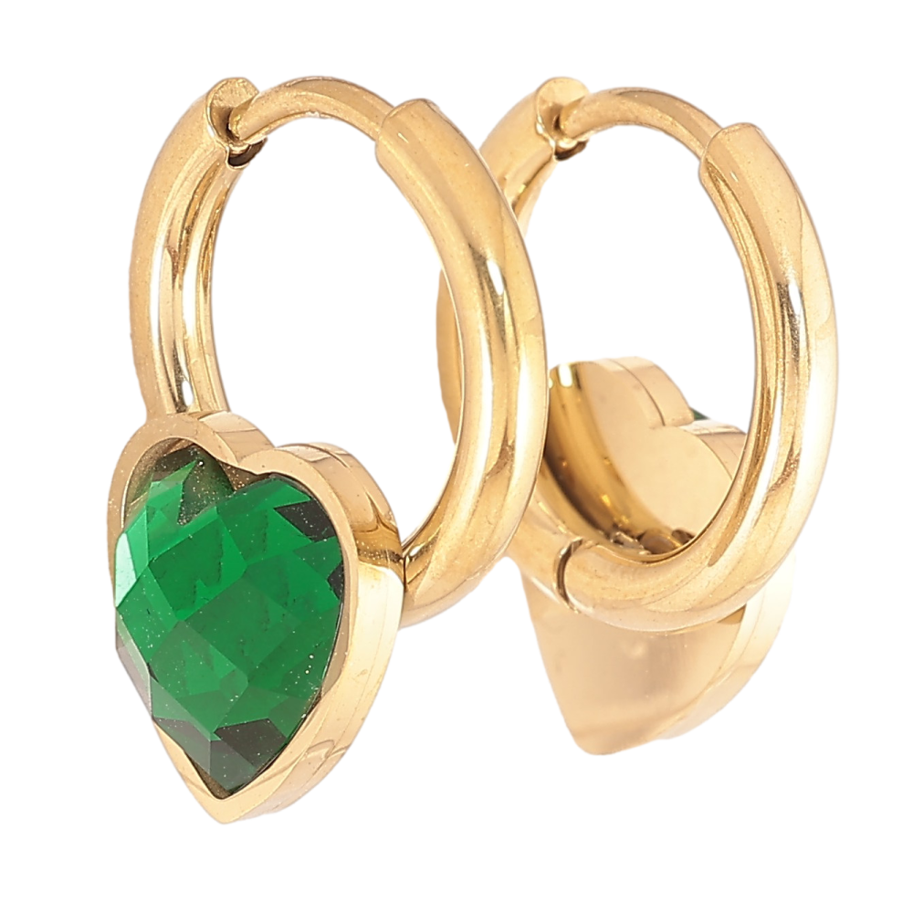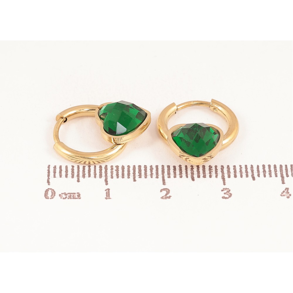 Серьги Xuping TTM Stainless Steel цвет 14К колечки "Зеленые кристальные сердечки"