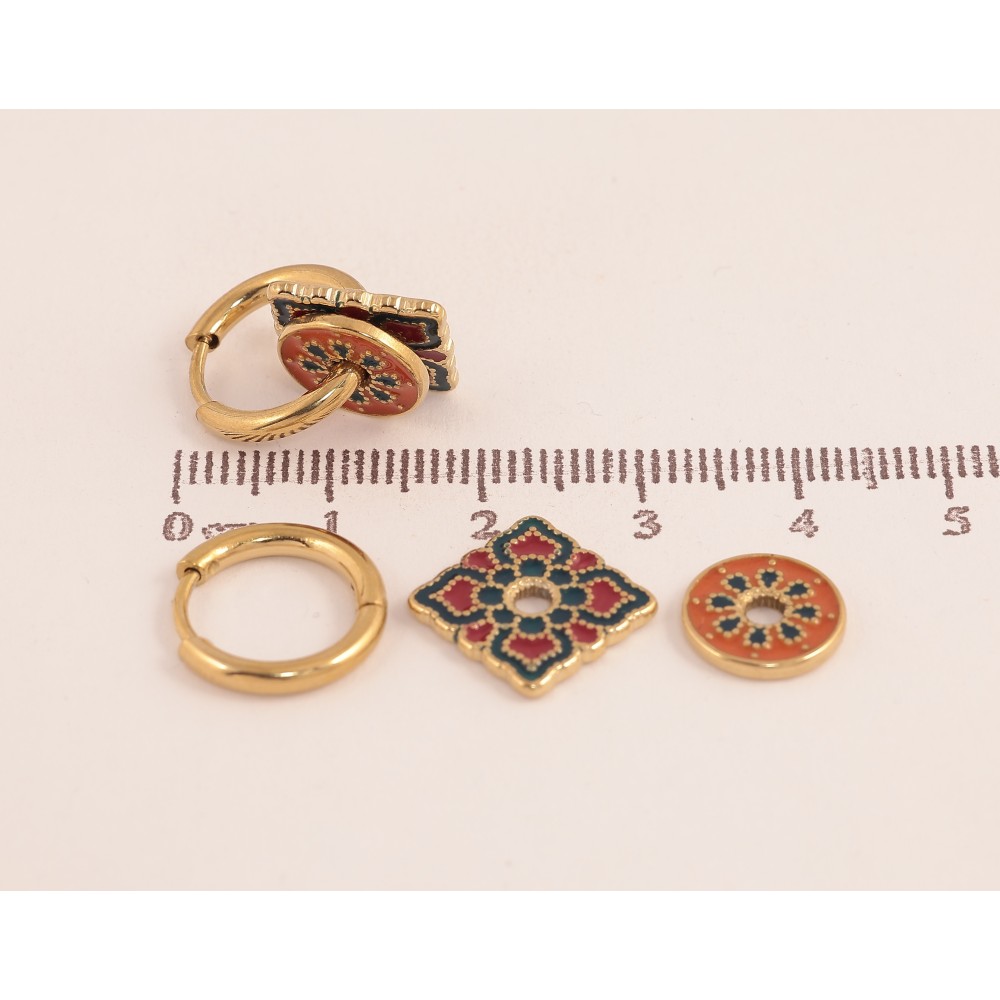 Серьги Xuping TTM Stainless Steel цвет 14К подвески на колечках "Узор эмалью" 2 в 1