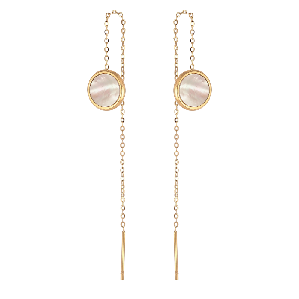 Серьги Xuping TTM Stainless Steel цвет 14К протяжки "Круги с перламутровыми вставками"