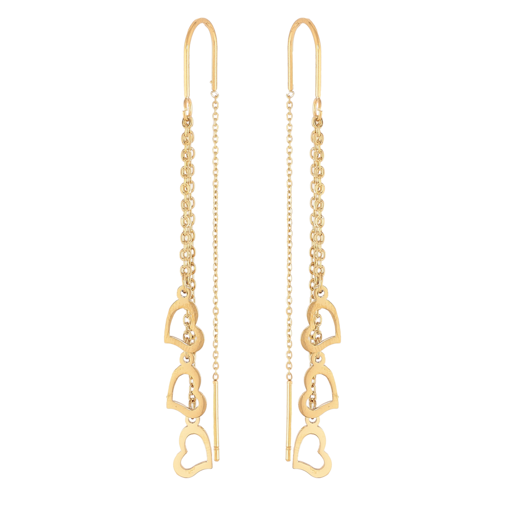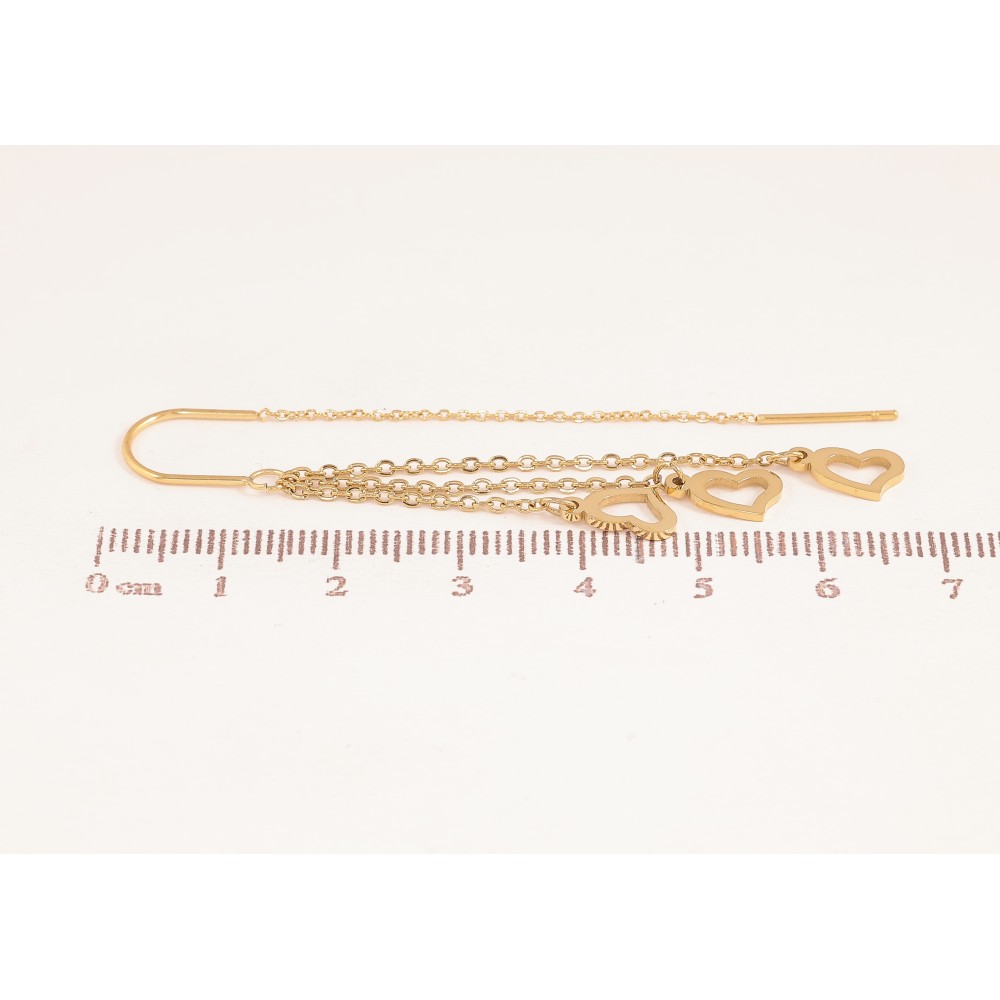 Серьги Xuping TTM Stainless Steel цвет 14К протяжки "Сердечки на цепочках"