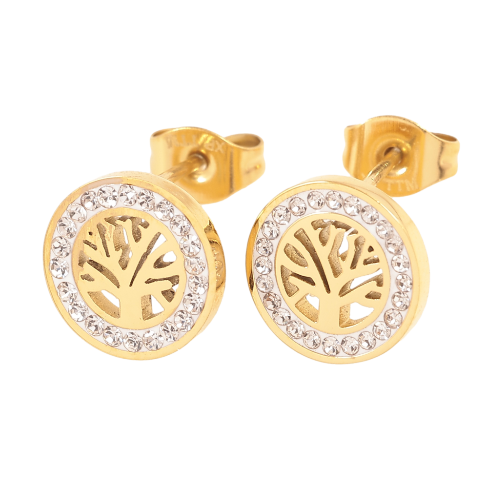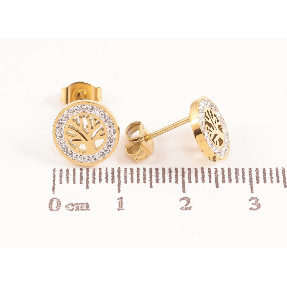 Серьги Xuping TTM Stainless Steel цвет 14К пусеты древо жизни ø 10мм
