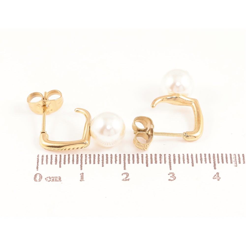 Серьги Xuping TTM Stainless Steel цвет 14К пусеты "Дужки с жемчужинами"