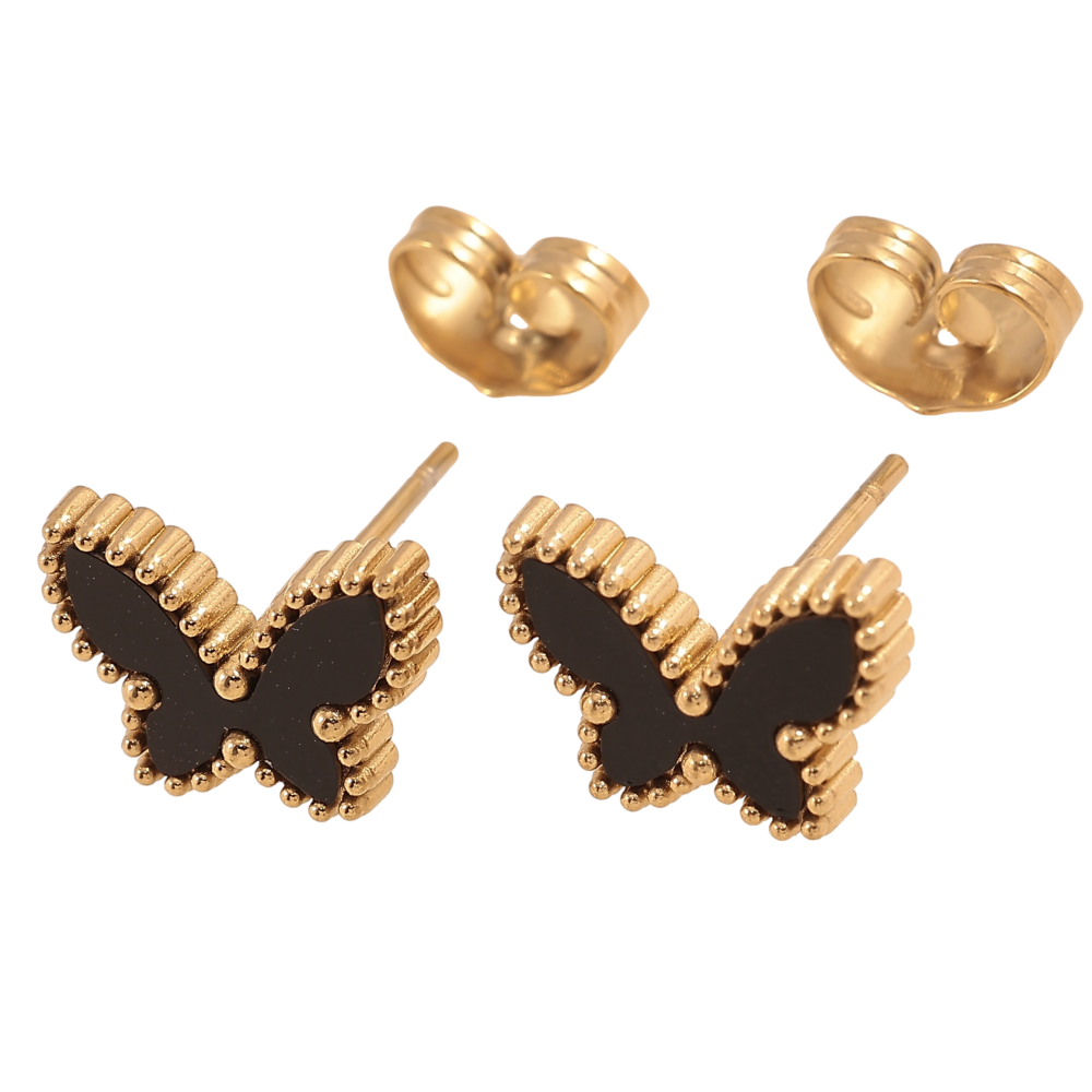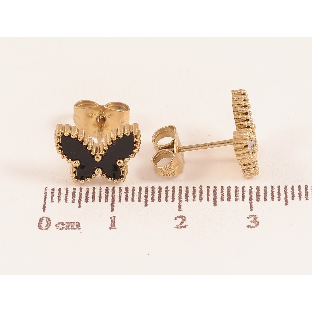 Серьги Xuping TTM Stainless Steel цвет 14К пусеты "Бабочки с черными вставками"