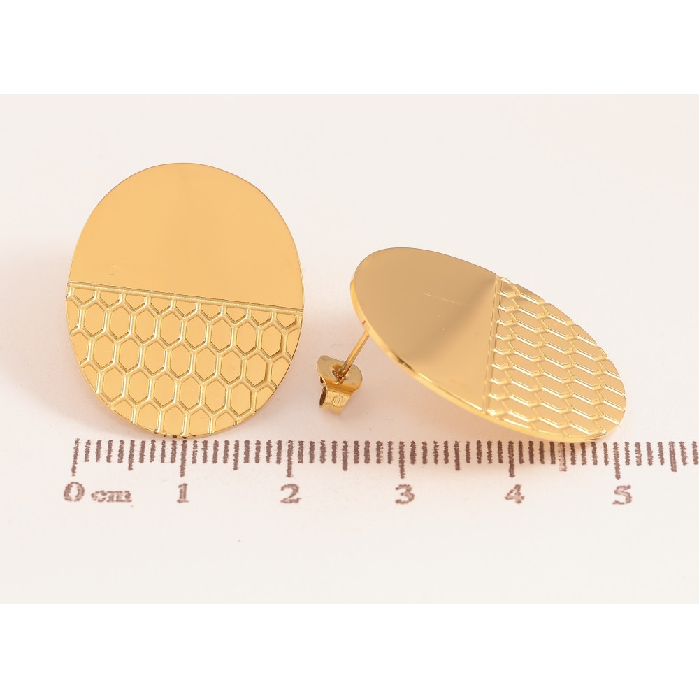 Серьги Xuping TTM Stainless Steel цвет 14К пусеты "Овалы с узором"