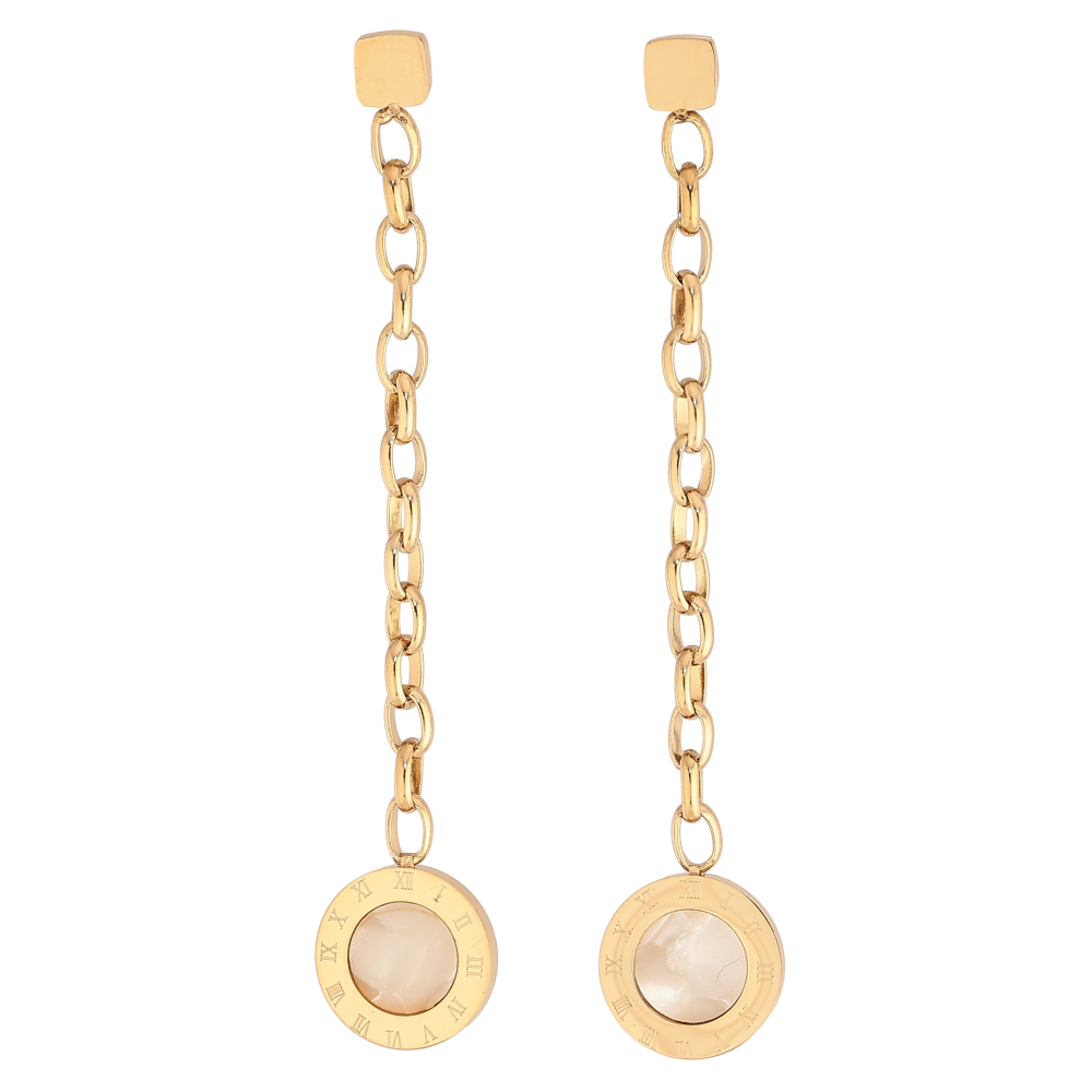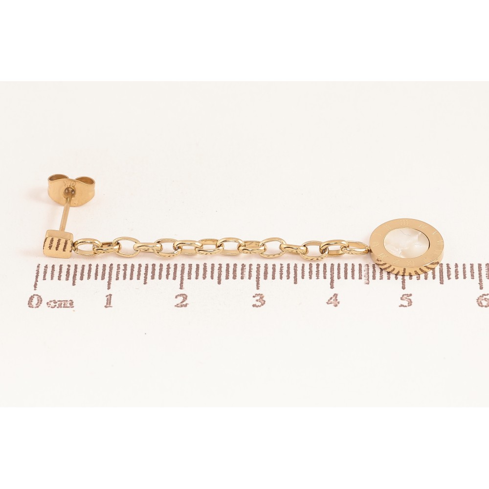 Серьги Xuping TTM Stainless Steel цвет 14К пусеты "Подвески с циферблатом и перламутровыми вставками"