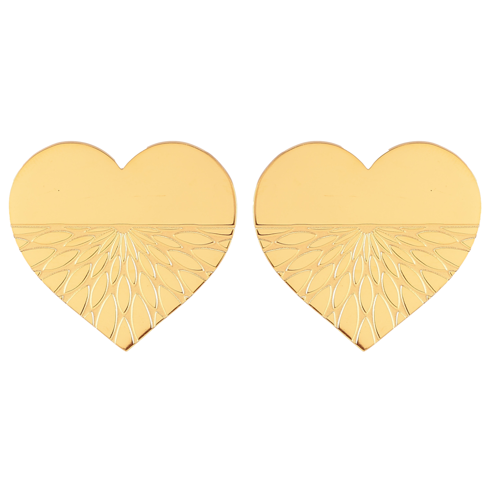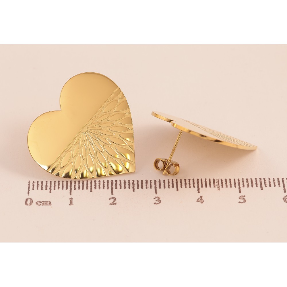 Серьги Xuping TTM Stainless Steel цвет 14К пусеты "Сердечки с узором" 26х27мм