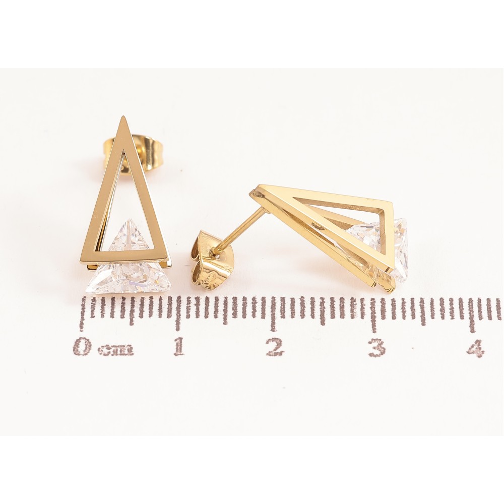 Серьги Xuping TTM Stainless Steel цвет 14К пусеты треугольники с кристаллами