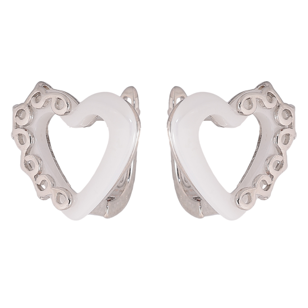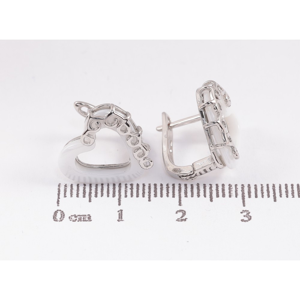 Серьги Xuping TTM Stainless Steel цвет Родий английский замок "Сердечки с белой керамикой"
